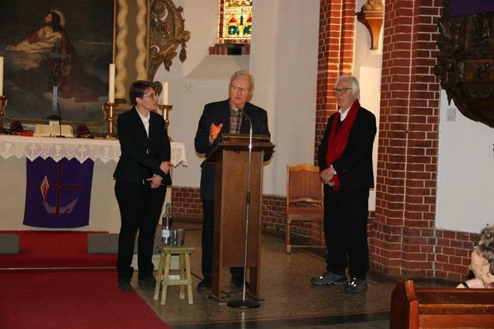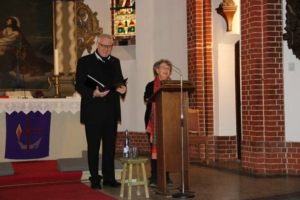 Die Kirche war gut gefüllt und die Freude der Teilnehmer über die Fortsetzung der in der Gemeinde Wangels etablierten Veranstaltung war groß. Prof. Dr. Gaby Herchert und Dr. Jörg Zimmer eröffneten die Tagung mit der Vorstellung des Treckberichts Werners v. Gellhorn, der 1945 mit Planwagen und Kutschen vor der heranrückenden russischen Armee aus Ottwitz (Schlesien) flüchtete und 71 Personen, darunter betagte Dorfbewohnerinnen und Neugeborene, ohne Verluste in Sicherheit brachte. Genau ein Jahr nach Beginn des Krieges in der Ukraine gewinnt der historische Bericht neue Bedeutung. Die Flüchtlinge aus dem Osten waren nur an wenigen Orten willkommen, man verweigerte ihnen Unterkunft und versuchte, sie so schnell wie möglich loszuwerden.