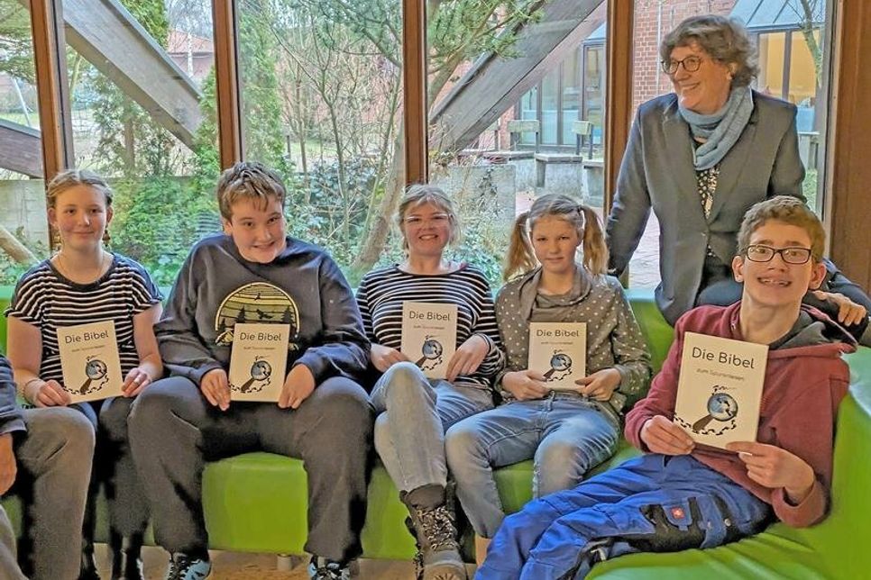 „Endlich haben wir eigene Bibeln”, freuten sich die Jugendlichen. Gemeindediakonin Nina Scholl hat wesentliche biblische Geschichten verständlich lesbar geschrieben und selbst altersgerecht grafisch gestaltet. Sie unterrichtet mit viel Begeisterung die Konfirmanden im Kastanienhof und war lange vergeblich auf der Suche nach einer geeigneten Bibel für den Unterricht. Jetzt wurde ihre Vorlage gedruckt und liegt in einer robusten Hardcoverausgabe vor. Der Förderverein für Jugendarbeit hat dieses Bibelprojekt unterstützt und die Druckkosten übernommen. Auch Schulbegleiterin Christina Langfeldt stellte fest: „Die Jugendlichen sind regelrecht begeistert von einer Bibel, in der sogar ihr Name steht.“