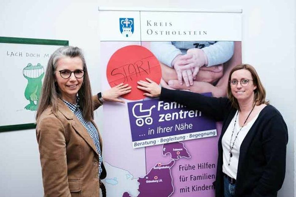 Auf den symbolischen Startknopf für die neue Webseite drückten in Oldenburg Martina Wackernagel vom Fachdienst soziale Dienste des Kreises Ostholstein und Nadine Müller von der Lebenshilfe Ostholstein. „Es war ein langer Prozess“, sagt Wackernagel zur neuen Homepage. Sie sei nicht nur von einer Person gebaut worden, sondern ein ganzes Team und betreute Familien seien mit Kritik und Anregungen daran beteiligt gewesen. „Nicht wir sollen die Seite super finden, sondern die Menschen, die unser Angebot brauchen“, stellt Wackernagel heraus. Nun sind die Internetauftritte der Familienzentren von Fehmarn, Heiligenhafen und Oldenburg über Neustadt und Eutin bis nach Ahrensbök und Bad Schwartau auf dieser Webseite zusammengefasst.