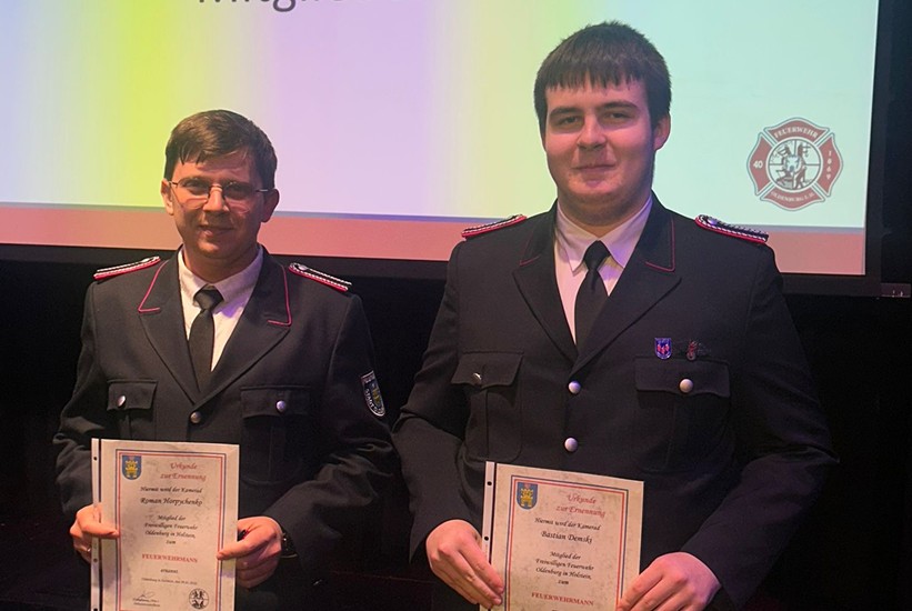 Im Zuge der Beförderungen wurden Roman Horpychenko und Bastian Demski zum Feuerwehrmann ernannt. Beide sind nun in der aktiven Wehr im Einsatz.