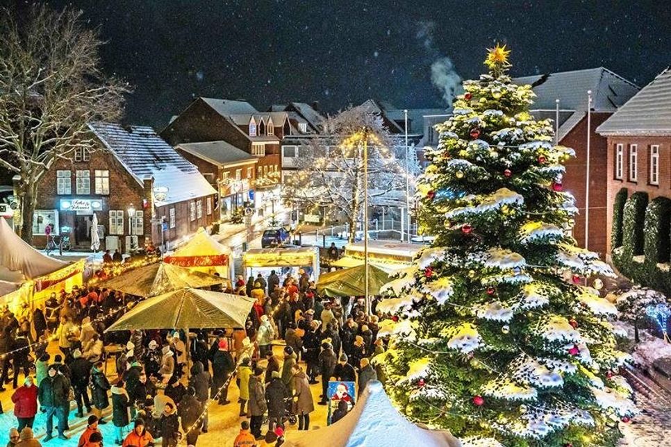 Maßgeblich für die weihnachtliche Atmosphäre auf dem Rathausvorplatz ist der funkelnde Lichterhimmel, der durch die Unterstützung des Wirtschafts- und Fremdenverkehrsvereins Oldenburg in Holstein e.V. realisiert wird. „Darüber hinaus möchten wir auch Christine und Hartwig Lersch aus Göhl sowie Familie Schwarze aus Oldenburg unseren herzlichsten Dank für ihre großzügigen Tannenbaumspenden für den Rathausvorplatz und den Standort am Voßberg aussprechen“, so Saba.