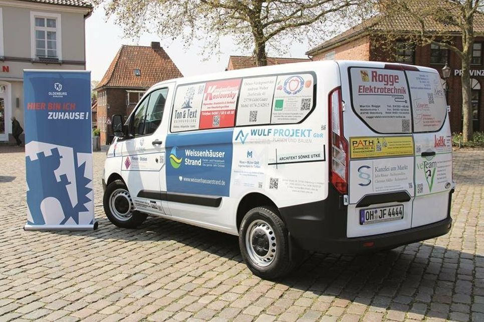 Oldenburg. (sg/mc) „Zweieinhalb Jahre verspätet, aber aus gegebenen Gründen, findet die Übergabe des neuen Werbemobils erst heute statt“, formulierte der Oldenburger Bürgermeister Jörg Saba die offizielle Übergabe, am Freitag, dem 12. Mai 2023, des neuen Neunsitzers.