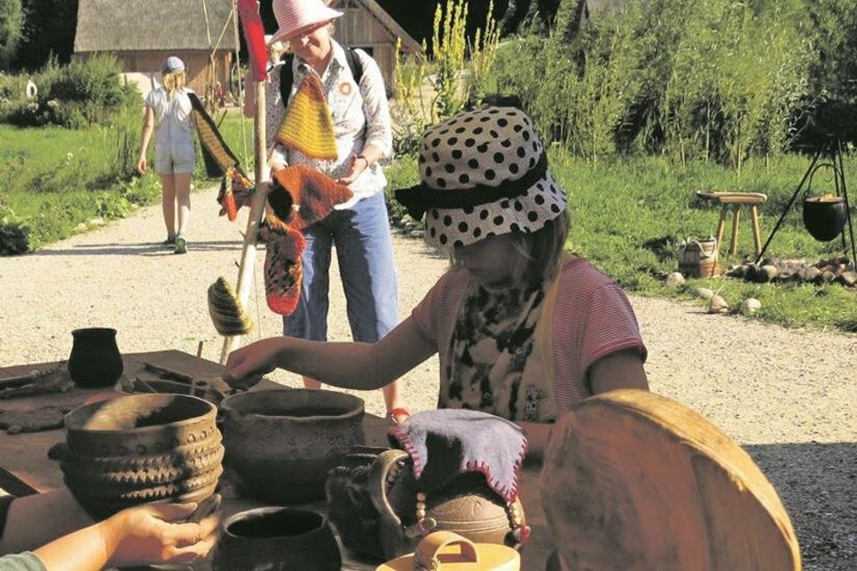Für die Besucher bleibt es allerdings nicht nur beim Zuschauen: Sie erhalten die Gelegenheit, vieles auszuprobieren und sich so aktiv zu beteiligen. Gegen einen kleinen Obulus für das Material können Sie zum Beispiel ein Trinkhorn fertigen, Bernstein, das Gold des Nordens, bearbeiten oder eine Glasperle am offenen Feuer wickeln. Der Höhepunkt des Besuches ist aber sicherlich die Fahrt mit der „Ratatoskr“ über den Wallsee ab 14 Uhr. Auch die Händler brachen früher mit tapferen Rudermannschaften zu den gefährlichen Reisen in fremde Länder auf, um Waren zu verkaufen und einzutauschen. Die sichere Rückkehr ist im Gegensatz zu damals aber garantiert.