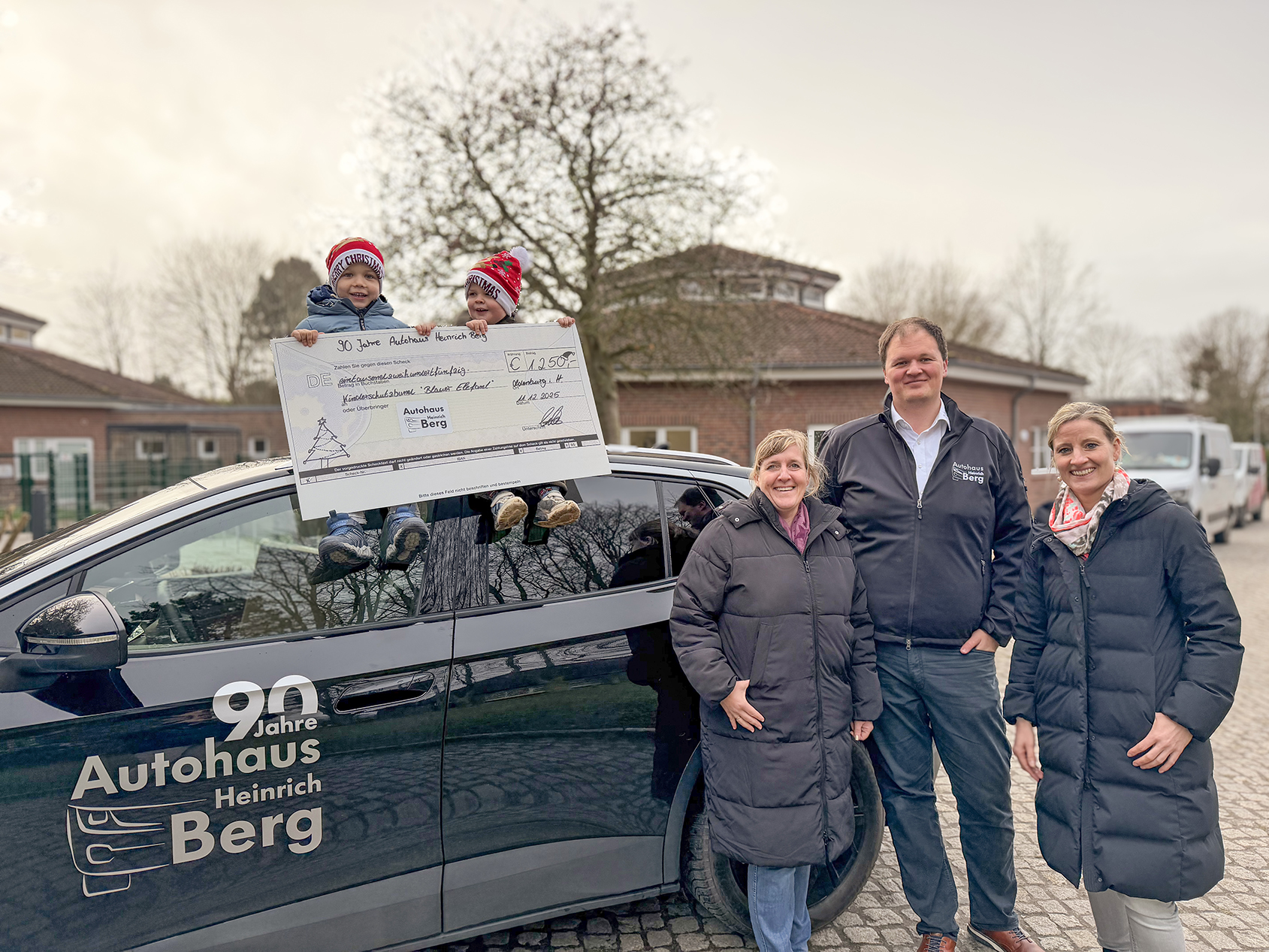 Am 12. Dezember 2025 wurde der Spendenscheck offiziell übergeben. Entgegengenommen wurde er von Lena Kohlsaat, Bereichsleitung Kindertagesstätten und Tagespflege beim Kinderschutzbund, sowie von Daniela Friedrich, Einrichtungsleitung der neuen Kindertagesstätte „Hafenkinder“. Die Einrichtung, die in diesem Jahr auf dem Gelände der Ameos Heiligenhafen eröffnet wurde, ist auch im Hintergrund des Übergabefotos zu sehen. Für einen besonderen Moment sorgten zwei kleine „Weihnachtsmänner“ auf dem Dach eines Firmenfahrzeugs: Tony Mey und Henry Mey. Sie standen symbolisch für die Kinder, denen die Spende zugutekommt – und zugleich für den ausgeprägten Familiengeist des Autohauses. Seit 90 Jahren befindet sich Heinrich Berg e. K. in Familienhand, heute geführt von Geschäftsführer Christian Mey, bei dem die nächste Generation bereits sichtbar dazugehört. Die Spendenaktion macht deutlich, was das Unternehmen seit Jahrzehnten prägt: Dankbarkeit gegenüber Wegbegleitern, tiefe Verbundenheit mit der Region und der feste Wille, dort zu helfen, wo Unterstützung gebraucht wird.