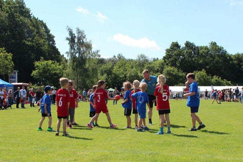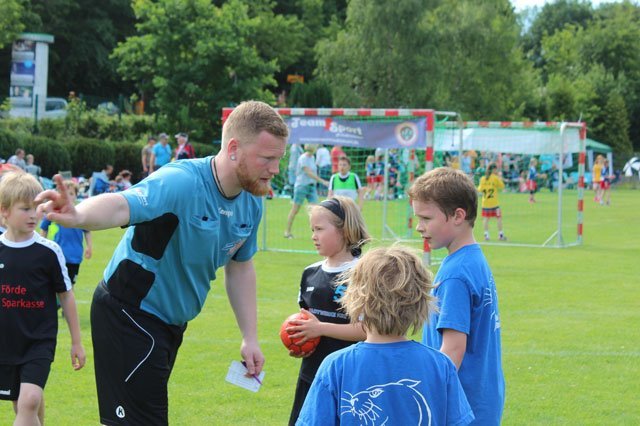 Plön/Wellsee (t). Die Maxis des TSV Plön versprechen neue Handball-Karrieren: Beim Kleeblatt-Turnier in Wellsee konnten 14 handballbegeisterte Kinder ihre ersten Erfahrungen im Spielbetrieb sammeln. Am Training (jeden Dienstag um 15 Uhr in der Plöner Breitenauhalle) nehmen die Mädchen und Jungen aus den Jahrgängen 2011 bis 2014 schon fleißig teil. Hier zeigt Trainerin Jana mit Hilfe des aktuellen FSJ-lers Robin wie man richtig passt, wirft und fängt.