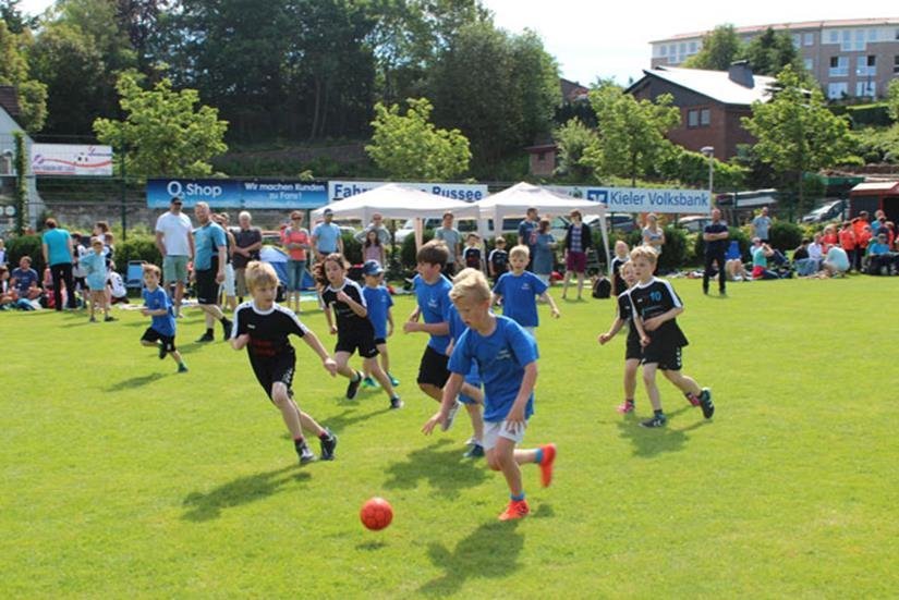 Die Wellseer Turnierleitung pfiff das erste Spiel der Kleinen gegen den TSV Schönberg an. Nach zweimal acht Minuten endete das Duell mit 2:1 und Schönberg ging als Sieger vom Platz, was der guten Laune der Spieler des TSV aber keinen Abbruch tat. Zur Belohnung für ihr gutes Spiel gab es dann erst einmal 20 Minuten Pause und eine Stärkung. Mit großen Augen und noch größerer Begeisterung schilderten die Kinder ihren mitgereisten Eltern, was da gerade alles passiert war, bevor das nächste Spiel gegen den TSV Raisdorf anstand.