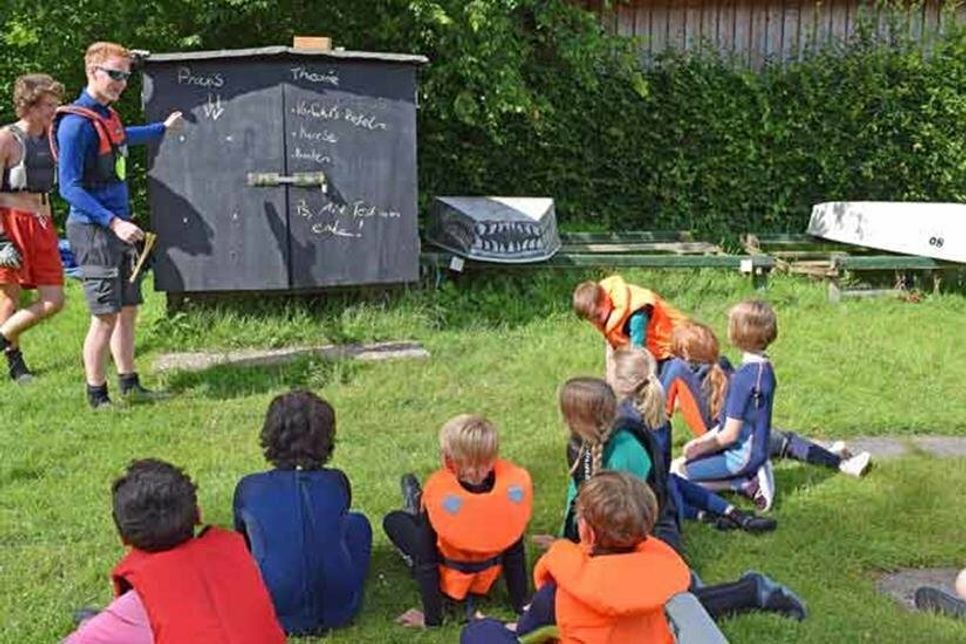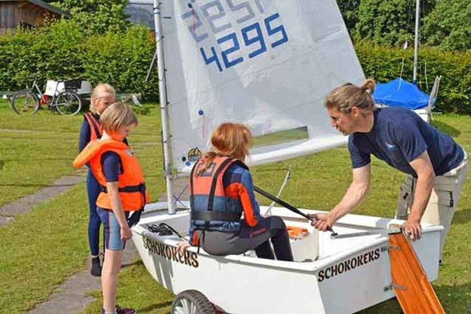 Preetz (tg). Leichte Bewölkung, angenehme Temperaturen und eine leichte Brise: perfektes Segelwetter am vergangenen Donnerstag, für den Nachwuchs des Preetzer Segelclubs. Es steht die nächste Trainingseinheit an. Die Jugendtrainer Jannis und Amon weisen die Neueinsteiger und auch die „alten Hasen“ in die heutige Trainingsstrecke ein. Bevor es für alle auf den Lanker See geht, muss die Strecke zunächst theoretisch von allen verinnerlicht werden. Auf dem See ist mit roten Bojen ein Kurs markiert, den die kleinen Segler absolvieren müssen. „Wenn der Wind aus unterschiedlichen Richtungen kommt, müssen bestimmte Segeleinstellungen beachtet und geübt werden, so zum Beispiel die Wende“, schildert Jugendwart Benjamin Kühl. „Bei uns steht aber auch der Spaß im Vordergrund!“ Wer mag und die entsprechenden Leistungen bringt, kann natürlich auch an landesweiten Segelwettbewerben teilnehmen. Bevor es für die kleinen Anfänger richtig losgeht, heißt es für Lene (neun Jahre), Anni (acht Jahre) und Eva (zehn Jahre) an diesem Tag zunächst: Trockenübungen an Land. Die Schülerinnen lernen zunächst bei Trainer Kühn, wie sie zum Beispiel das Ruder richtig halten und mit dem Manöver „Wende“ die Richtung wechseln können, - je nachdem, woher der Wind weht. Eva ist an diesem Donnerstagnachmittag das dritte Mal beim Training dabei. Sie war bereits auf dem Wasser und ist auch schon einmal gekentert. „Das ist aber nicht schlimm“, erklärt die zehnjährige fast beiläufig. Davor braucht niemand Angst zu haben, so Benjamin Kühn. Der Segelnachwuchs lernt gleich zu Beginn, was bei einem Umkippen des Bootes zu tun ist, - und wie jeder sein Boot wieder zurückrollen kann. Joanna ist seit mehr als vier Jahren beim Preetzer Segelclub aktiv. Sie hatte seinerzeit über den Vereinsstand auf dem Schusterfest Kontakt zu den Seglern bekommen. Ihr Interesse war sofort geweckt, zunächst musste aber noch das Schwimmabzeichen in Bronze erworben werden. Ihre Motivation ist ungebrochen. „Die Leute hier sind alle total nett, die Trainings sind interessant und es macht einfach Spaß“, berichtet die Schülerin. Was sie heute immer noch gerne macht, ist das Kentern. „Das passiert bei mir auch mal absichtlich“, erklärt sie schmunzelnd. Der Preetzer Segelclub sucht immer neue Mitglieder. Besondere Voraussetzungen sind nicht erforderlich, bis auf eine grundlegende Vorgabe: „Alle müssen mindestens das bronzene Schwimmabzeichen haben“, betont Jugendwart Kühn. Wer bereits eine eigene Schwimmweste hat, kann diese zu den Übungseinheiten mitbringen. „Wir können am Anfang auch eine bereitstellen“, so Kühn weiter. Das Segeln ist wirklich eine Sportart für Jung und Alt. Je nach Körpergröße erhalten die Segler dann entsprechende Boote zugeteilt. Eine wetterfeste Kleidung ist ebenfalls dringend empfohlen. Am besten ist hier ein Neoprenanzug, falls man doch einmal ins Wasser fällt und gegen die eine oder andere steife Brise auf dem Wasser. Die Saison geht von April bis November. Das Kindertraining findet außerhalb der Ferienzeit immer am Donnerstag statt, von 16 bis 18.30 Uhr. Auf dem Vereinsgelände, am Strandbad am Lanker See. „Einfach vorbeikommen, reinschnuppern und Spaß haben, - wir bringen jedem die notwendigen Segelkenntnisse bei“, betont der Jugendwart. Für die erste Ferienwoche (4. bis 8. Juli) gibt es noch wenige Plätze für den Feriensegelkurs für Kinder/Jugendliche: täglich von 10 bis 16 Uhr. Der Verein hat aber noch weitere Segelkurse im Angebot, für unterschiedliche Altersklassen, auch im Erwachsenenbereich.