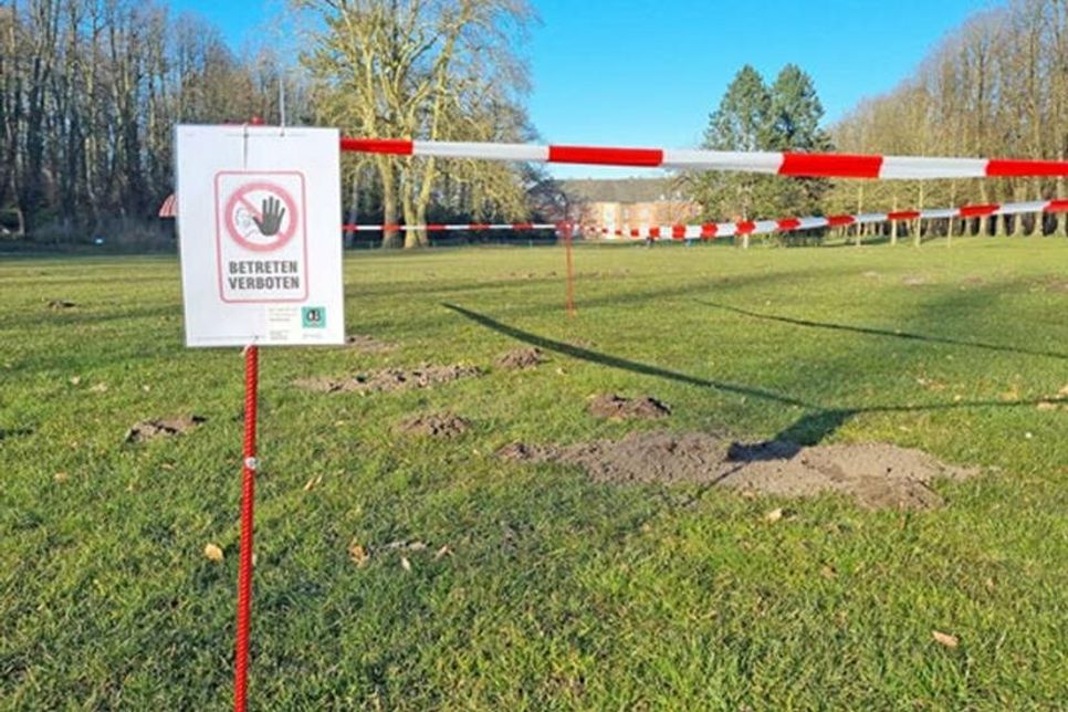 Auf dem Sportplatz sind durch Maulwurfsaktivität Vertiefungen, Löcher und unterhöhlte Stellen entstanden. Von diesen gingen für den Sportbetrieb Verletzungsgefahren ausgehen, hieß es aus der Kreisverwaltung.