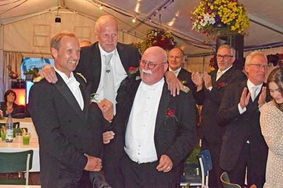 Preetz (tg). Nach drei Jahren hat die Preetzer Schützengilde mit Heiner Rath wieder einen neuen Regenten. Auf dem Gildefest bestimmte am vergangenen Samstag das Schicksal Heiner Rath und seine Frau Vera zum neuen Majestätenpaar. Björn Demmin konnte endlich die Königskette an seinen Nachfolger weiterreichen: seine Amtszeit hatte sich pandemiebedingt seit 2019 zweimal ungeplant verlängert. Mit großer Freude begrüßten und umjubelten alle Gildebrüder und Gäste den neuen Regenten mit seiner Frau. Vor der Proklamation am späten Abend war die Spannung im Festzelt beinahe mit den Händen zu greifen. Alle Schützen und Gäste waren gespannt, wer nach drei langen Jahren sich die nächsten 12 Monate mit der Königswürde wird schmücken können. Wie gewohnt kursierten am Samstag auf dem Schützenplatz zahlreiche Gerüchte und Vermutungen über unterschiedliche Namen machten die Runde. Ältermann Wolfgang Schneider gab wie immer diverse Hinweise, um die Spekulationen weiter anzuheizen. Nur kurze Zeit später rief er dann aber aus: „Unser neuer König ist Heiner Rath!“ Kaum hatte er den Namen der neuen Majestät ausgesprochen, wurde diese auch schon von zwei Offizieren, Thoralf Volkens und Dieter Jensen, geschultert und unter frenetischem Jubel aller durchs Festzelt zum Rednerpult getragen. Noch ganz überrascht und sichtlich gerührt, erhielten Heiner Rath und seine Frau Vera die traditionellen Königsketten verliehen. „Nach den ersten Hinweisen des Ältermannes hatten wir beide schon eine leichte Vermutung, dass es uns treffen könnte“, sagte das frisch gebackene Regentenpaar kurz nach der Proklamation. Grundsätzlich muss jeder damit rechnen, der in die Gilde eintritt. Mit dieser Haltung war auch Heiner Rath in das Schützenfest gegangen. Der Fliesenlegermeister ist 2009 in die Preetzer Schützengilde eingetreten und hatte in der Vergangenheit schon einmal das Amt des Fahnenträgers inne. Vor dem 59jährigen und seiner Frau liegt nun ein spannendes Königsjahr, gefüllt mit umfangreichen Aufgaben und zahlreichen Pflichten. Beide hoffen auf ein normales Gildejahr, möglichst ohne pandemiebedingten Einschränkungen. Von Heiner Rath wird erwartet, dass er mit seiner Frau Vera das Gildeleben während seiner Regierungszeit nach eigenen Vorstellungen gestaltet und mit eigenen Ideen bereichert. Doch am Krönungsabend am vergangenen Samstag wurde die neue Majestät erst einmal tüchtig gefeiert. Den Haustürschlüssel musste Heiner Rath direkt nach der Proklamation an Hauke Hansen übergeben. Noch während die restlichen Schützen ihr Königspaar beglückwünschten und hochleben ließen, war Hauke Hansen mit einigen Helfern schon zum Wohnhaus der frisch gebackenen Majestät unterwegs. Mit Tischen, Bänken, Tellern, Besteck und Getränken wurde es umgehend in ein zweites Festzelt verwandelt. Konkrete Vorstellung oder Ideen für die kommen 12 Monaten hat Heiner Rath noch nicht. „Gemeinsam kann man viel auf die Beine stellen und gemeinsam ist vieles möglich“, erklärte Vera Rath. Erste Hilfsangebote und Unterstützungszusagen gab es für beide bereits kurz nach der Proklamation. „Das macht den Zusammenhalt aus!“, freut sich Heiner Rath, als frisch gebackener König der Preetzer Schützengilde, auf die kommende Zeit.