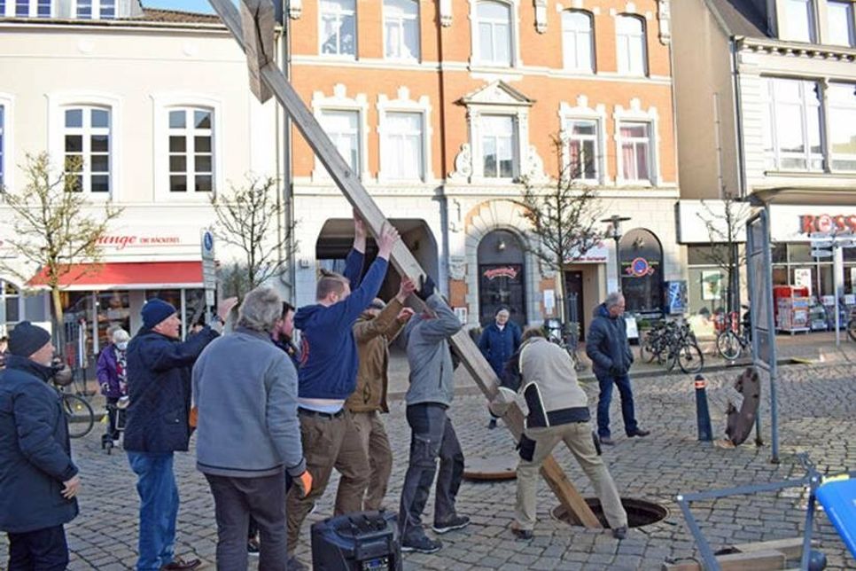 „Wir wollten erreichen, dass die Kirche zu den Leuten kommt, quasi ins Wohnzimmer der Stadt, um möglichst viele Preetzerinnen und Preetzer zu erreichen“, blickt Gernot Weimar von der evangelischen Kirchengemeinde zurück. Und weil die Sorgen um aktuelle Konflikte nicht abriss, sondern in jedem Jahr leider immer wieder aktuell war, entschlossen sich die Initiatoren, dass Friedenskreuz jedes Jahr erneut auf dem Marktplatz der Schusterstadt aufzustellen. Nach 20 Jahren ist es eine feste Größe in der Passionszeit, bis zum Osterfest. „Für viele Menschen gehört das Holzkreuz einfach zur Osterzeit, so wie der Weihnachtsbaum in die Adventszeit“, berichtet Gernot Weimar. Weder er noch die anderen Organisatoren hatten bei den diesjährigen Planungen zur Errichtung des Kreuzes gedacht, dass der Anlass in diesem Frühjahr aktueller ist denn je.