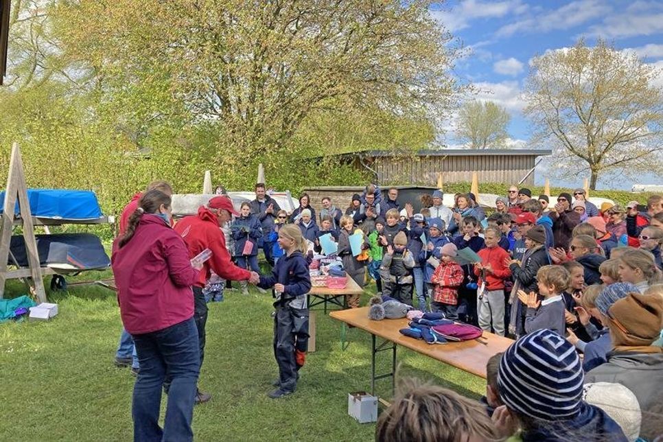 Gut gelaunt kamen alle zurück an Land und freuten sich schon auf die Siegerehrung. „Bei uns bekommt jeder eine Urkunde und einen Preis“, sagt Preisfee Bettina Bewader. Seit über fünfzig Jahren sitzt sie selbst im Boot und weiß genau, was für eine Leistung so ein Segelwochende ist: Ein tolles Erlebnis für die ganze Familie. „Und wir freuen uns immer über neue Mitglieder“, lädt sie zur Kontaktaufnahme ein. Ansprechpartner ist Jugendwart Benjamin Kühn, erreichbar unter 0171-244 68 36.