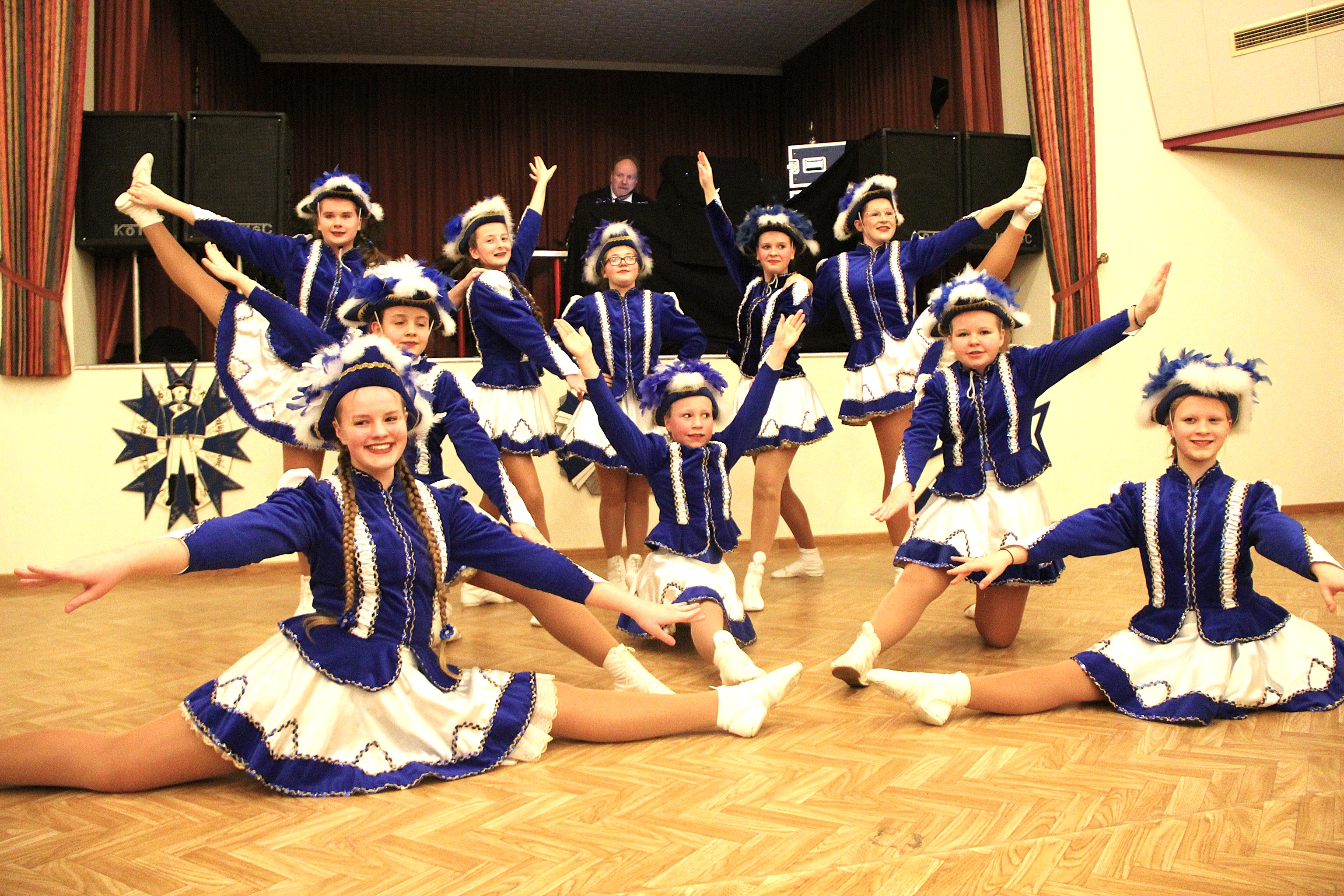 Es war der Startschuss für rasante Wochen mit Rathaussturm und Grünkohlessen in der alten Schwimmhalle, der Ordensverleihung Amicii Laetitiae an Daniel Günther und Ralf Stegner, den Lübecker Lumpenball, die Damensitzung Nyge Münster in Tungendorf und Besuche bei befreundeten Garden. Dazu kamen Auftritte in Seniorenheimen in Wankendorf, Malente, Ascheberg, Lütjenburg, Plön, Preetz und Dersau. Die blau-weiße Fahne wurde beim Kinderkarneval in Grebin ebenso hochgehalten wie in der Kirchengemeinde Ascheberg. „Es waren viele Termine in einer so kurzen Session und unsere tollen selbstständigen Mädchen haben sich immer wieder auf die neuen Säle eingestellt“, resümiert Karneval-Urgestein Barbara Kleinmann. Ihr besonderer Dank geht an die Eltern, die Kinder direkt nach der Schule eingesammelt haben und abends erschöpft und überdreht wieder mit nach Hause nehmen durften.