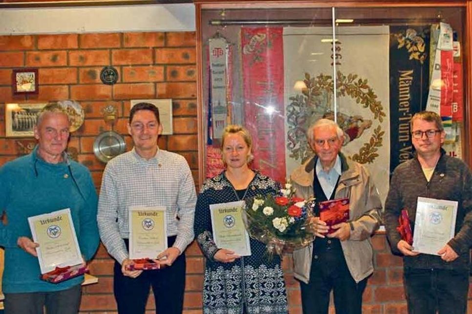 Zudem konnten der Vorsitzende und der Ältestenrat mehrere Sportler für ihre 50-jährige PTSV-Mitgliedschaft auszeichnen: Die goldene Ehrennadel erhielten Eckhard Baasch , Ulrike Bendschneider, Karl Heinz Frank, Andrea Gerlach, Hans Herbert Hartz, Meta Heinrich, Carsten Holdorf, Eckhard Holtz, Lutz Jarre, Jochen Kretschmer, Peter Reimer, Walter Sinterhauf und Christa Wiese.