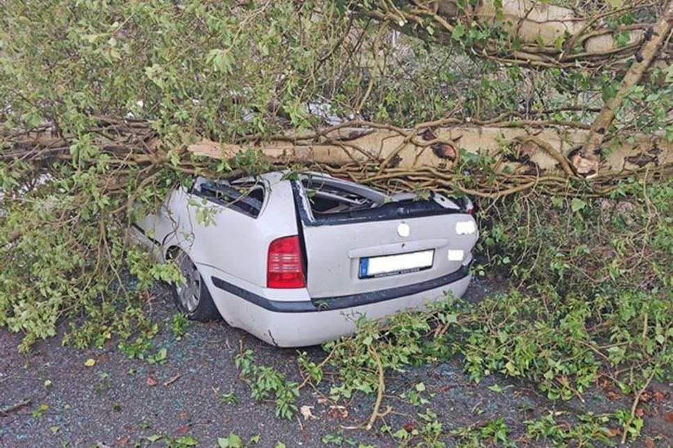 09:03 Uhr: Langensäten, Baum auf Auto und Straße