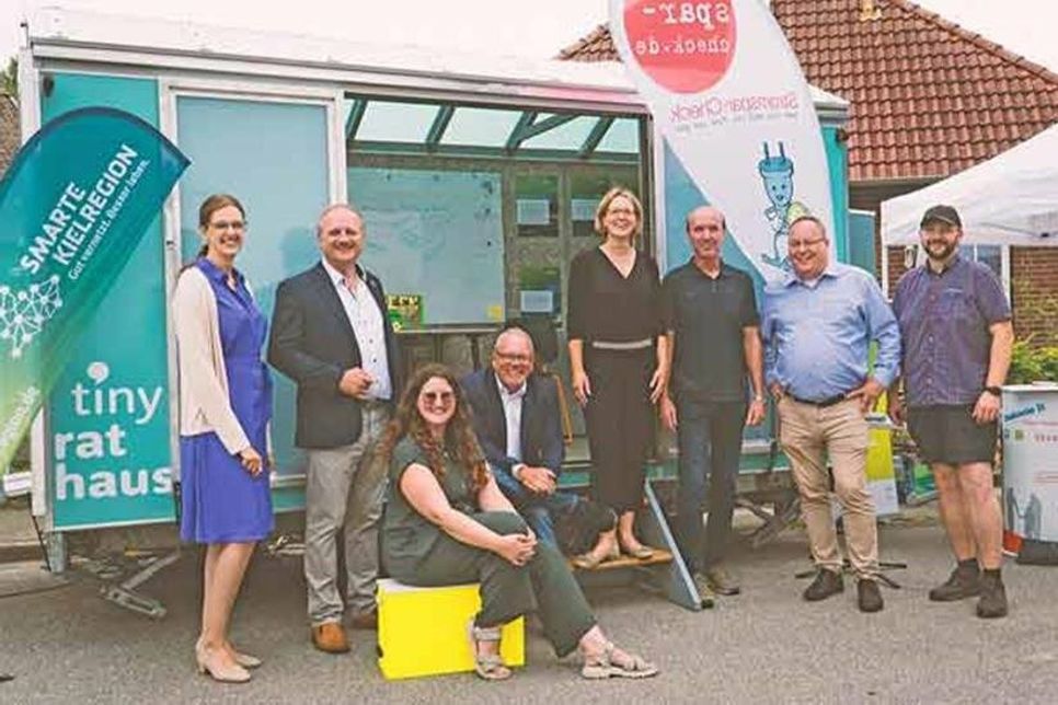 Barsbek (t). Vier Tage, vier Gemeinden: Von Mittwoch bis Samstag, 27. August, rollte das kleinste Rathaus der Welt „Tiny Rathaus” durch die Probstei. Unter den Überschriften „Was wünschst du dir von einem Rathaus der Zukunft?” und „Welche Ideen hast du für die Zukunft deiner Region?” besuchte das Team der smarten KielRegion Rathaus die Standorte Laboe, Schönberg, Barsbek und Passade. Dort nutzen die Bürgermeister Heiko Voß, Peter Kokocinski, Timo Schlabritz und Gerd Rönnau die Gelegenheit, direkt mit den Menschen vor Ort in Kontakt zu kommen. Zusätzlich konnten sich alle zu einem bunten Angebot informieren. Neben dem Team der smarten KielRegion waren auch Informationen und Gesprächspartner zu den aktuellen Themen Breitbandausbau (TNG), Alpha-Angebot der VKP und Energiesparen (Diakonie) mit dabei.