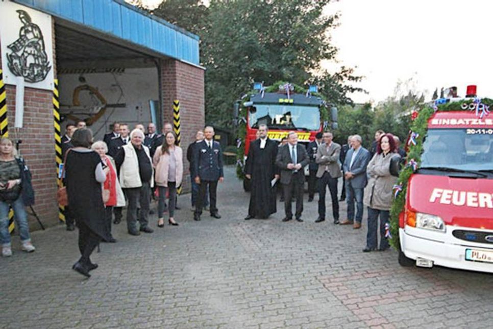 Probsteierhagen (kas) Große Freude bei der Freiwilligen Feuerwehr Probsteierhagen über zwei Neuzugänge: Ein brandneues Hilfeleistungs-Löschgruppenfahrzeug (Typ HLF 20/16) und ein gebrauchter Einsatzleitwagen wurden am Wochenende offiziell in Dienst gestellt. In einer Feierstunde übergab Bürgermeister Klaus Pfeiffer die Schlüssel an den Gemeindewehrführer Thomas Pahlke, der die beiden Fahrzeugschlüssel an Löschmeister Bernd Moje (HLF 20/16) und Hauptbrandmeister Hans-Jürgen Maas (Einsatzleitfahrzeug) weiterreichte. Die beiden Gastgeber freuten sich, im Rahmen dieses Abends zahlreiche Bürger der Gemeinde, Mitglieder von Ortswehren aus der Probstei sowie zahlreiche Vertreter aus Politik und Wirtschaft wie den stellvertretenden Landrat Werner Kalinka, den Pastor der Gemeinde Probsteierhagen Christoph Thoböll und vor allen vier Kameraden der Partnergemeinde aus Dabel in Mecklenburg-Vorpommern begrüßen zu können. Pastor Thoböll stellte in seinem Grußwort fest, dass die Wehr mit diesen beiden neuen Fahrzeugen für die Zukunft technisch gut gerüstet sei und überreichte den beiden Wagenführern je einen Schutzengel als geistlichen Beistand. „Diese Fahrzeuge stehen hier, um Leben zu retten! Keiner spricht bei den Einsätzen von Wind und Wetter.“ Thoböll beendete die kleine Andacht mit den Worten: „Der größte Schatz der Feuerwehren sind die Aktiven.“ Werner Kalinka erklärte, dass der Kreis die Anschaffung des HLF 20/16 mit 25 Prozent der förderungsfähigen Kosten aus den Mitteln der Feuerschutzsteuer übernimmt. Maximal werden dadurch 71.250 Euro gefördert. „Eine Feuerwehr braucht für ihre wichtige Arbeit eine gute Ausrüstung“, so Kalinka. Kreiswehrführer Manfred Stender überbrachte die Grüße und Wünsche der rund 100 Feuerwehren im Kreis Plön. Vor allem dankte er der Jugend, die den Weg in die Feuerwehr gefunden habe. Der stellvertretende Gemeindewehrführer Joachim Komischke aus der Partnergemeinde Dabel übergab ein hochprozentiges „Fensterputzmittel“ an den Gemeindewehrführer Thomas Pahlke. Die Freiwillige Feuerwehr zählt aktuell 34 Aktive sowie sechs Mitglieder in der Reserve- und sechs Senioren in der Ehrenabteilung. Die Jugendabteilung besteht aus 16 Mitgliedern.
