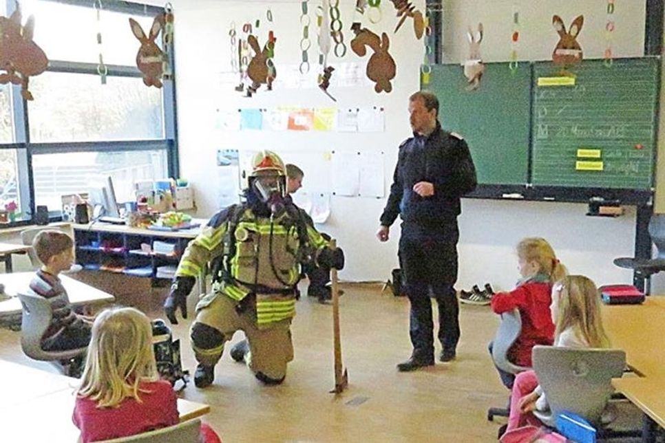 Laboe (uwr). Zweimal im Schuljahr kommen Feuerwehrmänner der Freiwilligen Feuerwehr Laboe in die Grundschule Laboe. In jeder Klasse halten sie zwei Lehreinheiten in 14 Tagen. Brandschutzerzieher und Hauptfeuerwehrmann Nicolai Meller ist seit acht Jahren dabei. Feuerwehrmann Marcel Matusch und Oberlöschmeister Thorsten Pickel unterstützen ihn dabei. „Wir wollen den Kindern die Angst nehmen, denn wir brauchen ihre Hilfe“, erklärt Nicolai Meller im Vorfeld. Im Gespräch werden das Verhalten in Gefahrensituationen, die Notfallnummern geübt und die Kinder lernen das Aussehen der Feuerwehr in schwerer Ausrüstung kennen. Kinder verstecken sich im Notfall, besonders wenn alles verraucht, laut ist. Mit der Brandschutzerziehung wollen sie Ängste im Vorfeld abbauen und die Schüler auf einen Notfall gut vorbereiten.