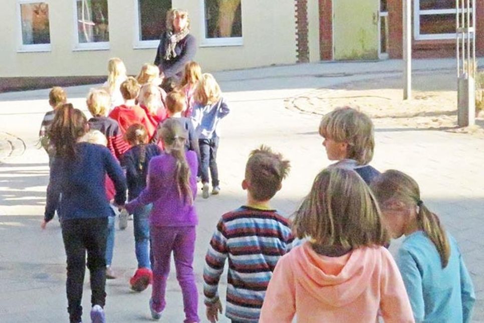 Mucksmäuschenstill sitzen die Schüler der Klasse 1a da. Es ist ihre zweite Stunde und als Nicolai Meller nach den Notrufnummern fragt, sprudeln die Antworten hervor. 110 und 112. Auch die Fragen wissen die Kinder und das sie nicht auflegen dürfen. Jetzt heißt es üben! Der Brandschutzerzieher geht an die Tür. „Stellt euch vor, es hat Alarm gegeben. Wir müssen die Klasse verlassen. Es ist nicht verraucht.“ Die Klassenlehrerin Frau Döring eilt zur Tür. Die Kinder stürmen zu ihr. „Und alle wieder an ihren Platz!“ Irritiert gehen die Mädchen und Jungen zurück und setzen sich. „Es muss ruhig, Tisch für Tisch gehen.“ Die Klassenlehrerin soll die Tischnummern aufrufen und es sei auch egal, wer grad in Zweierreihen zusammensteht. Es sei wichtig, dass alle aufeinander achten. Beim zweiten Mal funktioniert es besser und los geht es die Treppe herunter Richtung Sammelplatz. Marcel Matusch nimmt leise Finja und Ian mit. Doch das bleibt nur wenige Meter unbemerkt. Immer wieder sieht Frau Döring hinter sich. Mit festem Blick schaut sie den Brandschutzerzieher an und sagt: „Es fehlen zwei Kinder!“ Auch Anabell und Nayla bemerken schnell, dass ihre zwei Klassenkameraden fehlen. Die meisten Schüler erst am Sammelplatz. Später verriet Frau Döring, dass die Schlange wegen kranker Schüler zu kurz war, dann aber noch kürzer. Mit den Jahren bekäme man dafür ein Gefühl. Doch Nicolai Meller reicht das nicht. Als Ian und Finja wieder da sind, erklärt er, dass die Schüler aufeinander achten und auf ihre Lehrerin schauen sollen.