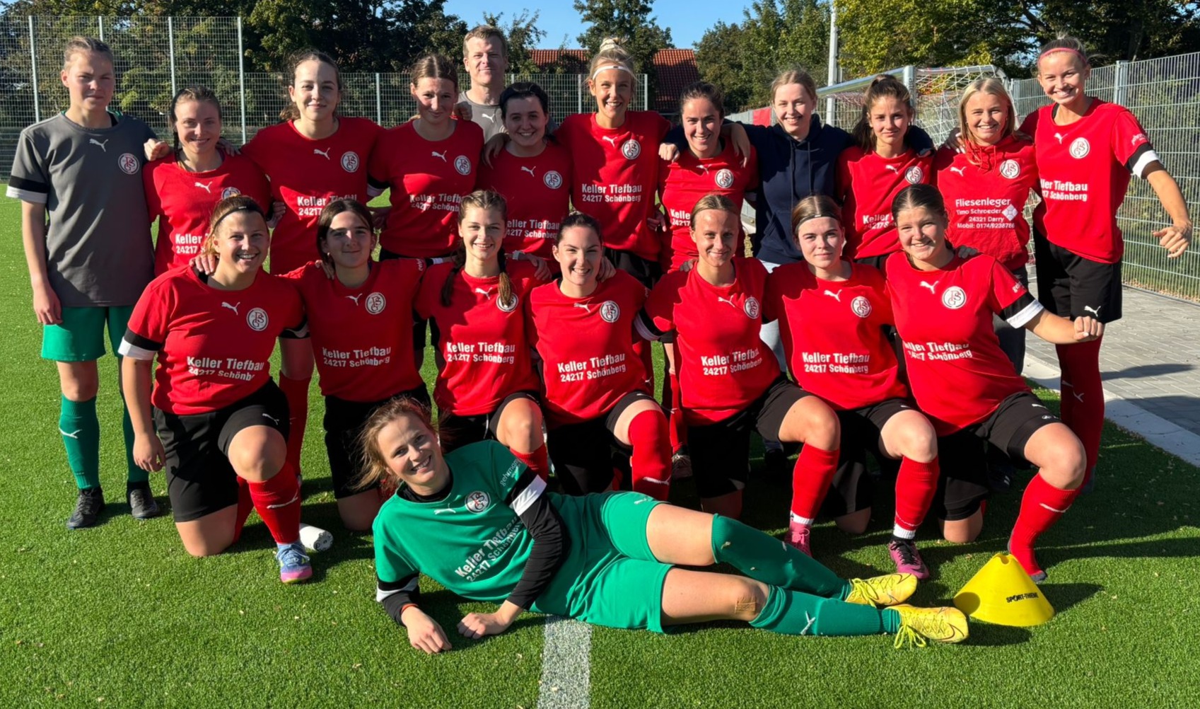 Schönberg (t/mm). Die Frauenmannschaft der Probsteier SG und ihre beiden Trainer Kjell Marcussen und Ceddi Cordes blicken auf ein erfolgreiches Jahr 2025 zurück. Wie der Verein mitteilt, hatte sich das Team erst im Sommer 2024 gegründet und durfte gleich im ersten Jahr den Aufstieg in die jetzige Kreisliga feiern. Auch in der aktuellen Saison wurden alle Punktspiele gewonnen. „Das ist ein starkes Zeichen dafür, wie gut sich die Mannschaft sportlich weiterentwickelt hat“, betont Trainer Marcussen. Doch nicht nur die Ergebnisse auf dem Platz stimmen. „Die Probsteier Mädels wachsen stetig weiter zusammen und präsentieren sich als eingeschworenes, junges und ehrgeiziges Team.“ Ein großer Schritt nach vorn sei zudem die Möglichkeit, den neuen Kunstrasenplatz in Schönberg nutzen zu dürfen. Die Bedingungen dort würden zusätzlich motivieren und trügen dazu bei, dass die sportliche Entwicklung ungebremst voranschreitet.