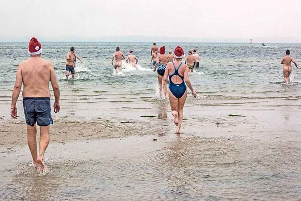 Laboe (uwr). Traditionell lädt das Meerwasserhallenbad in Laboe an Neujahr zum Anbaden in der Ostsee ein. Schon kurz nach 14 Uhr kamen die ersten Schaulustigen. Warm eingepackt drängten sie sich unter die Schwimmhalle. Dort waren sie wenigstens etwas vor eisigen Wind und Regen geschützt. Kommen sie oder kommen sie nicht? Wie viele werden es wagen in die 4 bis 5 Grad kalte Ostsee zu springen? Für Abwechslung der Wartenden sorgten die spektakulären, rasanten Ritte der Kitesurfer. Sie ließen sich von ihren Lenkdrachen über das Wasser ziehen oder wirbelten mit ihren Boards durch die Luft. Schon allein dafür hatte sich der Ausflug zum Laboer Strand gelohnt. Viele Zuschauer froren und wünschten sich einen Punschstand. Doch das Durchhalten wurde belohnt. „Sie kommen.“ Schon liefen über dreißig Frauen und Männer nur im Handtuch eingewickelt vom Saunaausgang zum Wasser. Alle hatten sich vorher in den Saunen aufgeheizt. Unter dem Applaus der Zuschauer stürzten sich die Wagemutigen in die Ostsee. Zum dritten Mal war Inga Bergmann aus Schwentinetal dabei. Dieses Mal sei es besonders eisig an den Füßen gewesen. Katrin Gutzeit fand es dagegen nicht so kalt wie in den letzten Jahren. Rüdiger Thede schwamm sogar ein paar Züge. Sein Geheimtipp: Am Vortag keinen Alkohol trinken und gut essen. Die erst zwölfjährige Katharina aus Dortmund war die jüngste Teilnehmerin des diesjährigen Anbadens. Zum ersten Mal war sie mit ihrer Mutter dabei und will unbedingt wieder mitmachen. Ein Bekannter ihrer Großeltern hatte vom Anbaden an Neujahr erzählt und Katharina war von Anfang an begeistert. „Das Schlimmste war der lange Weg durch den kalten Sand. Die Ostsee war dagegen richtig warm für die Füße“, erzählte sie nach ihren Ausflug ins Wasser. In einem Punkt waren sich alle Teilnehmer einig: Nach dem Sprung in die Ostsee fühlten sie sich richtig gut. Für das Wohlbefinden der Gäste sorgte neben dem Bademeister auch der Rettungsschwimmer Kay Karstädt. Er verriet auch, dass es immer möglich sei, sich in der Ostsee abzukühlen, wenn die Sauna geöffnet ist. Die Öffenungszeiten finden Interessierte unter http://www.laboe.de/oeffnungszeiten.html.