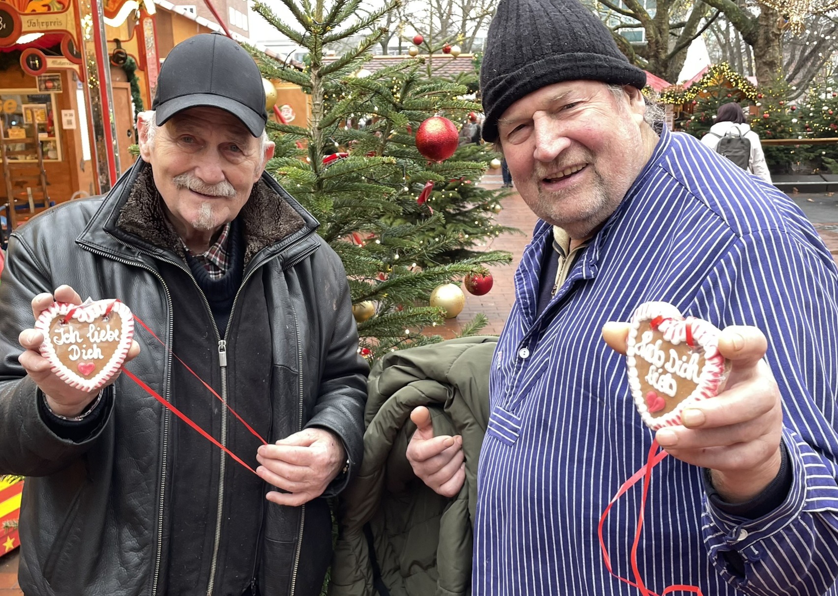 Der Verein Arbeit für Menschen mit Behinderungen hat rund 200 Mitglieder und ist über die Landesgrenzen hinaus aktiv. Zu den Mitgliedern gehörten unter anderen die ehemalige Ministerpräsidentin Heide Simonis sowie frühere Oberbürgermeister der Landeshauptstadt Kiel. „Ein toller Verein“, lobte Malte Kolshorn: „Ohne deren Engagement und die Spendenbereitschaft der Schausteller hätten viele Kinder keine Gelegenheit, einen Weihnachtsmarkt zu erleben.“ Nach dem Karussell überrascht Jipp die Gruppe mit kleinen Lebkuchenherzen. Kaum hat er sie verteilt, taucht ein Weihnachtsmann auf. Er sieht genauso aus, wie man ihn sich vorstellt. Roter Mantel, weißer Bart, gütiger Blick. Seine zwei Jutesäcke sind prall gefüllt. Für jedes Kind hat er eine Tüte mit Leckereien dabei. Auch die Betreuer erhalten Tüten, die sie später in der Schule an Kinder weitergeben, die heute nicht dabei sein können. „Das ist uns wichtig“, betont Manfred Jipp. Alle sollen ein Stück dieser Freude spüren.