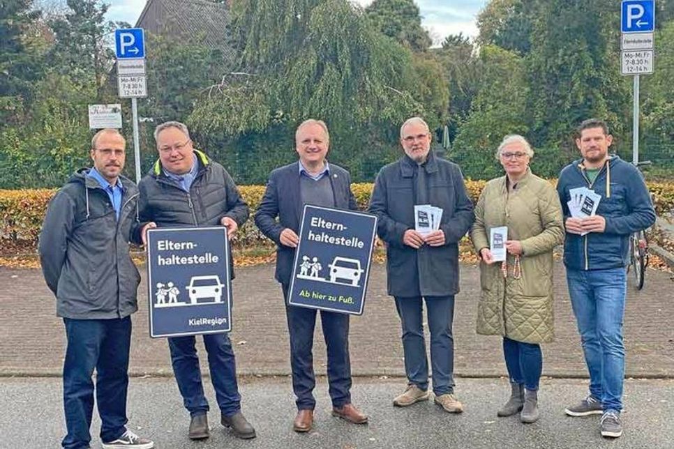 Schönberg (t). Mehr Sicherheit und Selbständigkeit für Kinder auf dem Schulweg: Gemeinsam mit der Grundschule an den Salzwiesen und der Gemeinschaftsschule Probstei und unterstützt durch die KielRegion hat die Gemeinde Schönberg die ersten zwei „Elternhaltestellen” in der Nähe der beiden Schulen des Schulverbands Probstei eröffnet. In Zusammenarbeit mit dem Bürgermeister, dem Schulverbandsvorsteher sowie den Schulleitungen und Elternvertretungen der beiden Schulen haben die Mobilitätsexpert:innen der KielRegion gut erreichbare und sichere Orte ausgewählt, an denen die Eltern ihre Kinder absetzen und einsammeln können. „Dadurch, so unsere Hoffnung, werden die Schulwege sicherer, der Verkehrsfluss besser und das morgendliche Verkehrschaos vor den Schulen reduziert. Gleichzeitig lernen die Schulkinder auf den ausgewählten Wegen zu den Schulen einen selbstständigen Umgang mit dem Verkehr”, sagt Schulverbandsvorsteher Lutz Schlünsen. „Diese Maßnahme wurde von der Gemeinde zur Probe auf ein Jahr beschlossen, in dieser Zeit wird man sehen, inwieweit sich der Verkehr vor den Schulen tatsächlich entspannt oder ob ggf. weitere Maßnahmen erforderlich sind, um unsere Schulkinder zu schützen”, unterstreicht Bürgermeister Peter Kokocinski.