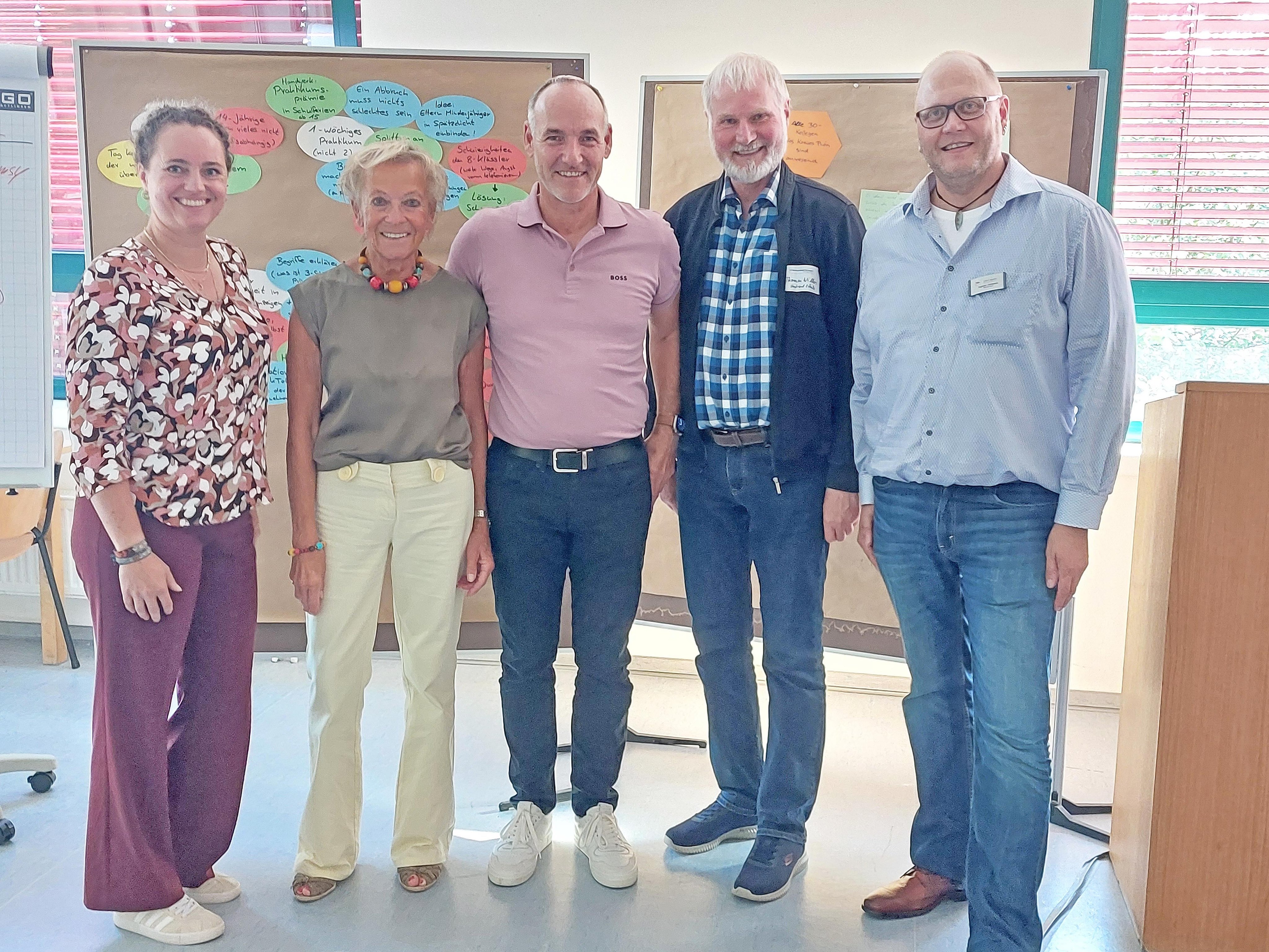 Sie moderierten das sechste Netzwerktreffen von Schulewirtschaft Schleswig-Holstein (v.l.): Anna-Lena Band (Wöhlk), Margrit Gebel (Schulewirtschaft Schleswig-Holstein), Ralf Bastian (Elektro Steffen), Thomas Willers (Schulewirtschaft Schleswig-Holstein), Ingmar Jonsson (Amt Schrevenborn).