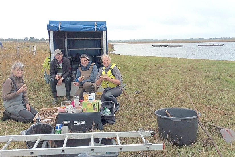 Stärkung nach getaner Arbeit (v.l.): Christina Mohwinkel, Andreas Burgkart, Enno Franck und Ulrieke Burgkart haben Schutzmaßnahmen ergriffen.
