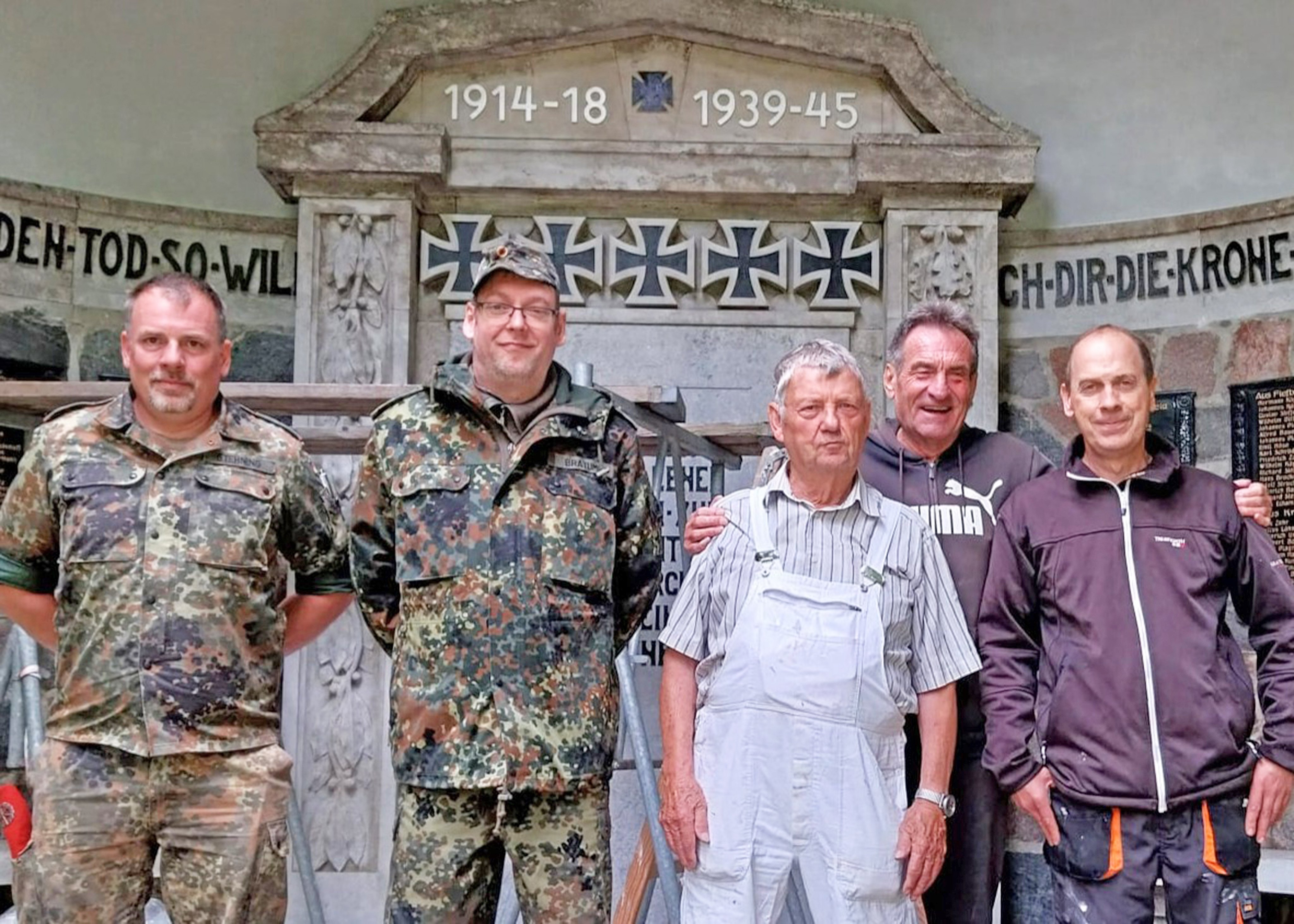 Schönberg (t). Kürzlich hat die Reservistenkameradschaft Schönberg die Arbeiten an der Vorderseite des Ehrenmals auf dem Friedhof abgeschlossen. Dabei handelte es sich bereits um den sechsten Kriegsgräberpflegeeinsatz, an dem fünf Kameraden der Reservistenarbeitsgemeinschaft Kriegsgräber beteiligt waren.