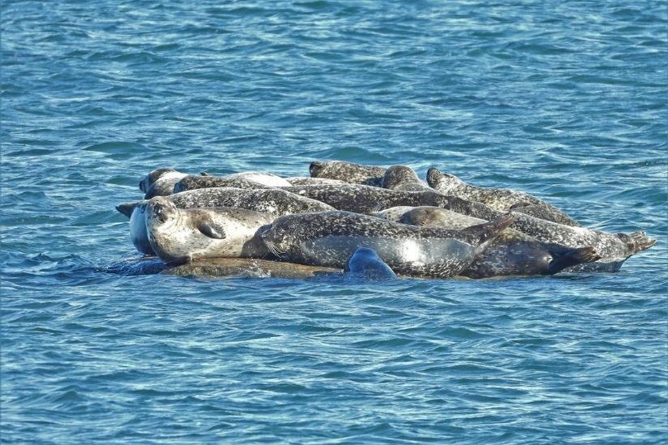 Stakendorf (t). „Wie schön – sie sind wieder da!“. Für Holger Langhagen, Fotograf in Stakendorf, Kreis Plön, war dieser Spaziergang am 19. Februar sein „absolutes Highlight“ in diesem Winter. Der Grund dafür war eine Gruppe Seehunde, die Langhagen in rund 200 Metern Entfernung entdeckte. Offenbar nutzten die Tiere das schöne Wetter für ein ausgiebiges Sonnenbad auf den Findlingen, die dort aus dem Wasser ragen. Neun Seehunde rasteten auf dem Ruheplatz, hat Langhagen gezählt. Doch weiter hielten sich in dem Bereich auf und „sprangen im Wasser wie Delfine herum“, so Langhagen. „Es war ein einmaliges Schauspiel.“