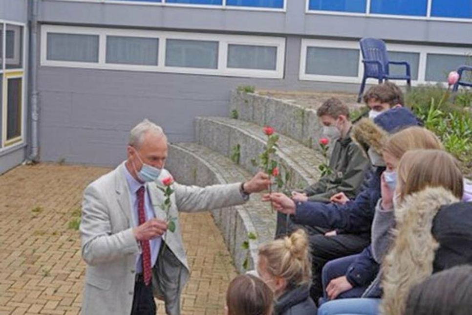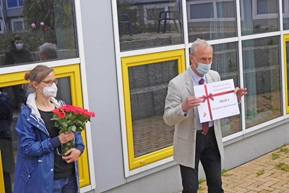 Bei so viel Engagement war es dann kaum noch eine Überraschung, dass der diesjährige Förderpreis der Schule an das Kunstprofil und die zwölf Schüler umfassende Lerngruppe des 11. Jahrgangs mit ihrer Lehrerin Laura Ballin ging. Nicht nur Schulleiter Uwe Borstelmann freute sich über die Preisträger und überreichte allen als Zeichen der Anerkennung eine Rose!