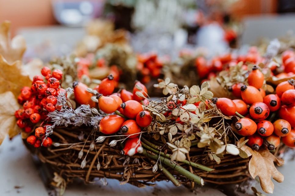 Passend zum Herbstbeginn macht sich ein Türkranz ganz hervorragend. Ein solcher Kranz ist ein toller Hingucker und schnell gemacht. Einfach im Garten die schönsten Blumen, Beeren, Zweige und Blätter einsammeln und mithilfe eines dünnen Drahtes an einem Strohkranz festbinden. Und schon ist der Herbst auch im Zuhause eingezogen. (gm)