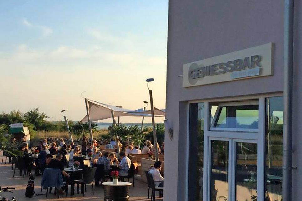 Die Genießbar im Eichenhain 9 liegt unmittelbar an der Promenade und der