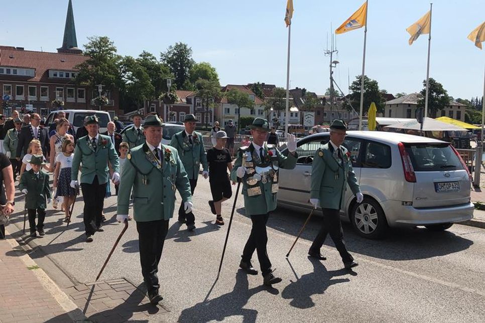 • 8 Uhr: Ausmarsch zum Abholen des Königs: Marktplatz - Markt, Ostseite - Reiferstraße - Grabenstraße - Vor dem Kremper Tor - Haakengraben