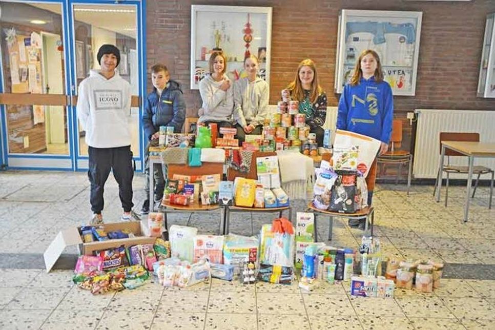 Um aus der Schockstarre herauszukommen und nicht untätig zuzusehen, beschlossen die Schülerinnen und Schüler der Schule an den Auewiesen auf ihrer SV-Sitzung (Schülervertretung), innerschulisch einen Spendenaufruf zu starten, Lebensmittel, Decken, Thermomatten, Thermoskannen und Hygieneprodukte zu sammeln und Pakete für die Ukraine zu packen. Denn die Deutsche Post hat eine ganz besondere Aktion ins Leben gerufen: Hilfspakete in die Ukraine können mit der Deutschen Post (DHL) kostenfrei versendet werden (bis zu 20 kg), sofern man sich online die entsprechenden Adressaufkleber herunterlädt, ausdruckt, ausfüllt und diese auf das Paket klebt.