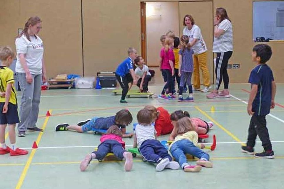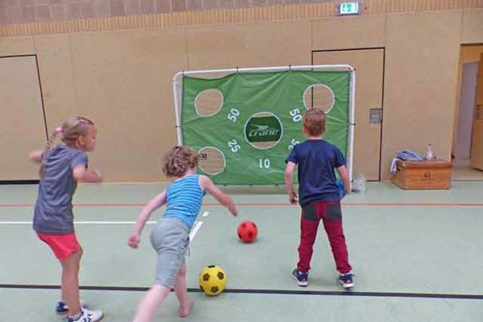 Denn Bewegung ist nicht nur gesund, sie fördert auch die körperliche, geistige und emotionale Entwicklung. Bewegung macht klug – und geben wir Kindern keine Bewegungsräume, schränken wir sie ein.“ Einschränken muss sich kein einziges Kind an diesem Vormittag, alle dürfen sich austoben, ausprobieren und ein bisschen wetteifern – wer zuerst auf dem Rollbrett die Bahn schafft oder die meisten Bälle versenkt. „Es geht um Bewegung, Spiel und Spaß“, schmunzelt Anna Heuer, „aber ein paar kleine Wettkämpfe wie beim Tauziehen oder dem Schwimmen auf Rollbrettern sind natürlich auch dabei, das finden Kinder meistens cool.“ Und cool finden die KiTa-Kinder so ziemlich alles an diesem Vormittag – das Balancieren über Hindernisse, das Jonglieren mit Bällen und Tüchern und den Jubel, wenn der Ball durchs Loch in der Torwand geht. Aus der Hüpfburg tönt Spaßgeheul und die auf den Rollbrettern zurückgelegten Meter sind kaum noch zu zählen.