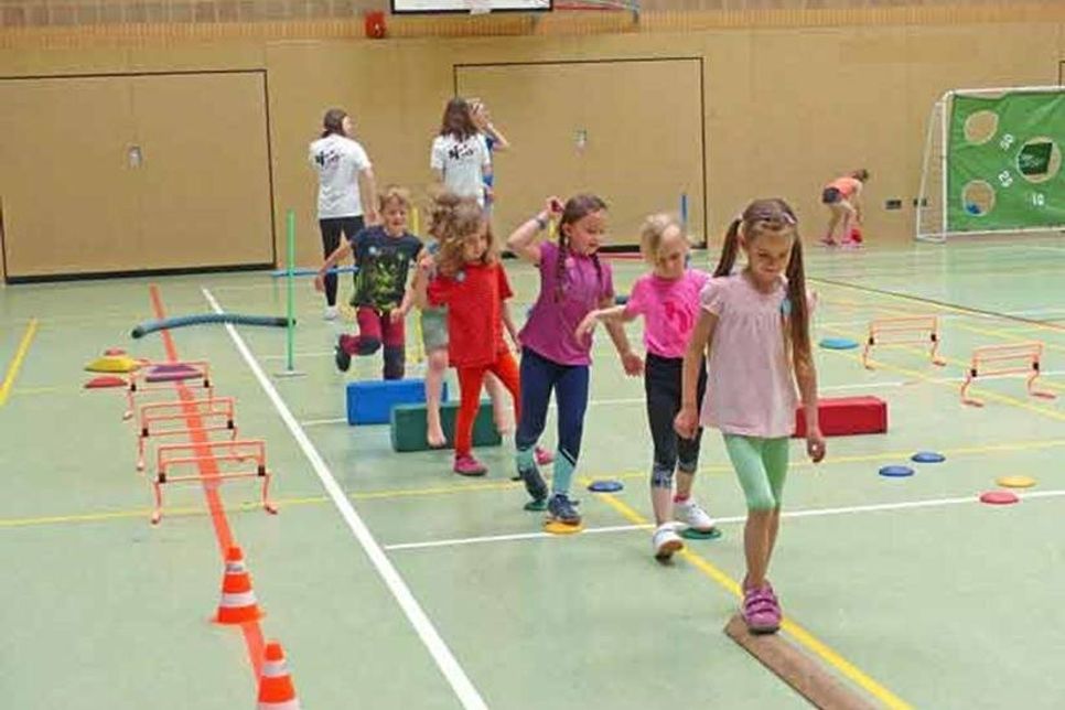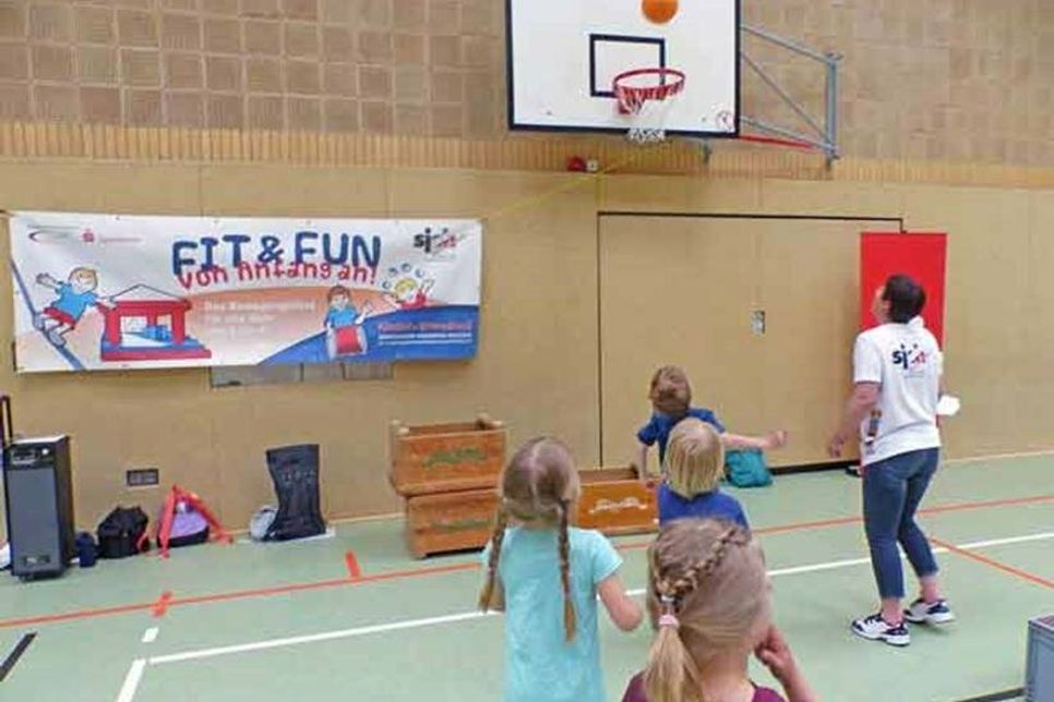 Eutin (ed). Rollbrettfahren, Jonglieren, Körbewerfen, Torwandschießen, Balancieren, Eishockeyspielen, Hüpfburghüpfen und Badmintonspielen – und das alles in der Turnhalle der Großen, zu denen die Kleinen ab Sommer auch gehören. So sah in diesem Jahr das Projekt Übergang von KiTa zu Grundschule aus – zum ersten Mal als großes Spiel- und Sportfest für die angehenden Schulkinder der Eutiner Kindergärten. „Das Projekt ist nicht neu“, sagt Barbara Lehmann, die Koordinatorin seitens der der Gustav-Peters-Schule an der Blauen Lehmkuhle. Jahr für Jahr werden die Schulkinder der KiTas zu einem Schulvormittag an der Schule eingeladen, an der sie im Sommer eingeschult werden. „Dieses Jahr wollten wir gern eine andere Form des Übergangs gestalten – mit allen zusammen.“ Die Idee dazu kam von Netti Thonigs, der Leiterin der KiTa Kinderinsel – „es ist so viel liegen geblieben über die Corona-Zeit hinweg“, sagt sie, „gerade bei den Kindern und in Sachen Bewegung – deswegen ist jedes Kind, das sich hier heute bewegt, ein echter Gewinn.“ Also wurde die Aktion Fit and Fun von der Sportjugend Schleswig-Holstein eingeladen, für die angehenden Schulkinder ein großes Spiel- und Sportfest auszurichten. Dazu die angehenden Schulkinder aller Eutiner KiTas – an einem Tag alle, die an der Blauen Lehmkuhle eingeschult werden, am nächsten Tag die Schulkinder für den Kleinen See und Fissau. Und flugs kam Anna Heuer von der Sportjugend mit einem kleinen Team und dem großen Sportjugendbus nach Eutin und hatte ganz viele Kisten voller toller Bewegungsstationen an Bord. „Es soll ein richtiges Bewegungsfest sein, gesponsert wird das von den Sparkassen“, sagt sie, „so können wir das kostenfrei und immer in Verbindung mit einem Verein vor Ort Schulen und Kindergärten zur Verfügung stellen.“ Ein Verein war in Eutin schnell gefunden – Eutin 08 stellte nur zur gern seinen BFDler Konrad mit einer super Torwand zur Verfügung. Und der Vereinsservice des Landessportverbands steuerte noch eine große, bunte Hüpfburg bei, sodass Spiel, Sport und vor allem Spaß nichts mehr im Weg stand. Mit Stempelkarte ausgerüstet starteten die Noch-KiTa-Kinder in der Turnhalle der Gustav-Peters-Schule an der Blauen Lehmkuhle ihren Stationen-Parcours – natürlich in bunt aus allen KiTas zusammengemischten Teams. „Die Stationen sind darauf ausgelegt, die Grundfertigkeiten abzudecken“, erklärt Anna Heuer, „Laufen, Springen, Werfen, Geschicklichkeit, Ausdauer und Kraft zu fördern und die koordinativen Fähigkeiten zu stärken.“ An jeder Station werden die Kinder vom Team der Sportjugend und ihren ErzieherInnen begleitet und haben einen Riesenspaß dabei, sich mit dem Badminton- oder dem Hockeyschläger auszuprobieren, Bälle abzuwehren oder im Basketballkorb zu versenken. Ganz nebenbei lernen sie die Kinder kennen, neben denen sie ab August vielleicht in einer Klasse sitzen oder auf dem Schulhof spielen. „Natürlich steht im Vordergrund der Kontakt zur Schule“, sagt Netti Thonigs, „und dass sich alle, die zusammen eingeschult werden, schonmal gesehen haben. Aber das Coolste an Fit and Fun ist die Bewegung.