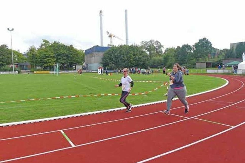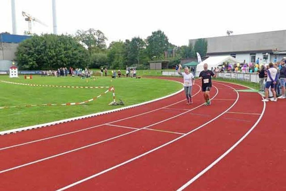 Am Sonntag dann reisten reporter-Teams aus allen Richtungen nach Oldenburg, wo es auf dem Sportplatz am Schauenburger Platz schon seit dem frühen Morgen – schließlich waren die UltraläuferInnen schon in aller Herrgottsfrühe zu ihren 85 Kilometern aufgebrochen, ohne einen reporter-Läufer in ihrer Mitte übrigens… – zuging wie bei einem fröhlichen Sportfest. Luftballons, Wurst im Brötchen, Waffeln und auch für die Kinderbetreuung war ausgezeichnet mit freundlichen Kaninchen und Co gesorgt. Rundherum konnten die LäuferInnen und BesucherInnen sich über das geplante Hospiz informieren, konnten Kuchen und Brötchen für den guten Zweck verspeisen und – vor allem – die LäuferInnen und WalkerInnen anfeuern und beklatschen.
