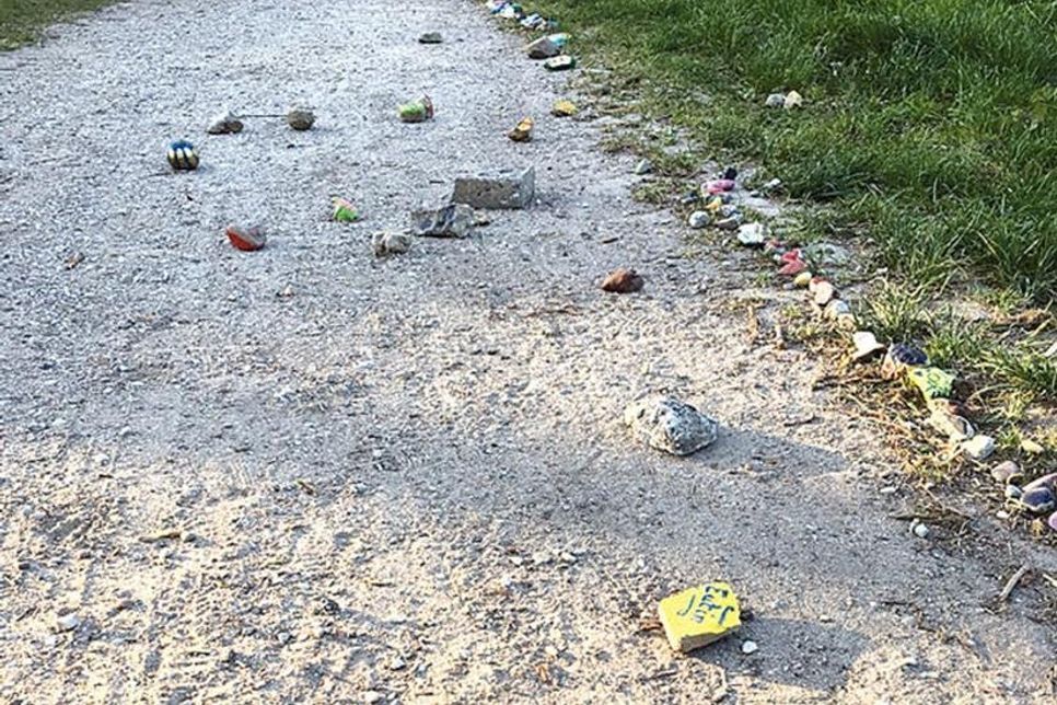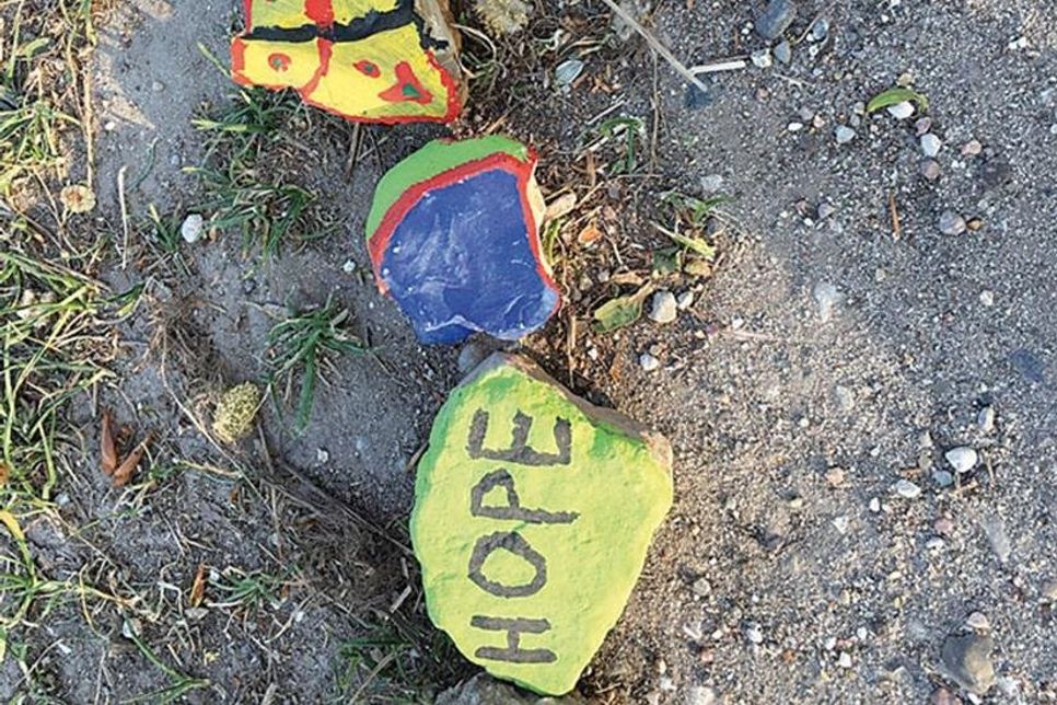 Hinnerk Tietjen schreibt uns: „Das hat mich heute früh am Kleinen See betroffen gemacht! Vor einiger Zeit haben mir nicht bekannte Mitbürger eine wunderbare Idee gehabt und umgesetzt. Sie haben beim Spielplatz bunt bemalte Steine am Wegesrand in einer langen Reihe abgelegt! Ich bin mir sicher, dass das viele Spaziergänger erfreut hat. Die Initiatoren haben ein kleines „Schild“ dazugestellt: