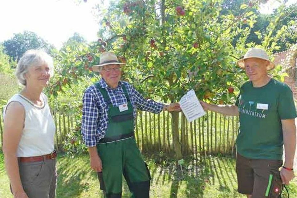 Immer wieder kommt es vor, dass im Garten der Neuen Wurzeln oder im VEN-Garten Gemüse fehlt, dass die unteren Äste der Obstbäume abgeerntet sind. „Komischerweise genau in der Höhe, die man greifen kann“, seufzt Jörg Hunke, der sich mit seinen KollegInnen um den Heil- und Giftpflanzengarten kümmert, aber auch zusammen mit den anderen KüchengärtnerInnen weitere Beete und Bereiche „beackert“, so wie die Obstbäume. Derzeit sind es vor allem die Pflaumen- und die Winterapfelbäume, die Sorgen bereiten – denn Pflaumen sind besonders beliebt und schnell gepflückt. „Und die Winteräpfel, wie der Name es schon sagt, schlicht noch nicht reif“, wie Kerstin Vieth die Küchengarten-Koordinatorin, erklärt. „Das sieht man daran, dass immer wieder angebissene Äpfel hier herumliegen.“ Klar, der Winterapfel sieht herrlich aus, rot und köstlich, ist aber frühestens im Oktober pflück- und im Dezember genussreif. Wer hier reinbeißt, erlebt eine saure Enttäuschung – und wirft den angebissenen Apfel dann natürlich einfach weg. Das müsste nicht sein, bäte der Besucher oder die Besucherin einfach einen der ehrenamtlichen GärtnerInnen um eine Kostprobe – er bekäme dann erklärt, dass die Äpfel noch nicht schmecken. Gleiches gilt für die so schön in Pflückhöhe angebauten Apfel-Cordons um die Beete. Oder die leuchtend violetten Pflaumen. Aber selbst wenn es reif ist, sind es ausschließlich die kleinen und die großen KüchengärtnerInnen, die es ernten dürfen. Denn: All das sieht zum Anbeißen lecker aus, aber sie sind das Ergebnis der Arbeit der Küchengärtner und sollten auch von ihnen „verwaltet“ werden dürfen – „wir freuen uns, dass der Küchengarten besucht wird und so beliebt ist, es soll ein dynamischer Ort sein, an dem Menschen Vielfalt und Geschmack erleben“, sind die ehrenamtlichen KüchengärtnerInnen sich einig, dafür sind sie mit großem Engagement, mit viel Herz und Leidenschaft bei der Sache. „Aber eigenmächtiges Ernten stellt uns dabei vor echte Probleme. So habe man, wenn hier in der Showküche gekocht wurde, das Essen noch kein einziges Mal allein aus dem Küchengarten bestreiten können, „weil immer alles schon weg war“, bedauert Brigitta Herrmann, „immer mussten wir zukaufen, und das ist eigentlich nicht der Sinn der Sache.“ „Und bei uns ist es so“, ergänzt Sabine Friederichsen aus dem Garten des Vereins zur Erhaltung der Nutzpflanzenvielfalt (kurz VEN), „dass einige Gemüsesorten zur Saat kommen müssen, damit wir Saatgut gewinnen können, weil wir es brauchen und im Frühling auch abgeben. Aber die Dicken Bohnen zum Beispiel waren in den vergangenen Jahren immer schon weg.“ Der VEN sorgt dafür, dass samenfeste Gemüsesorten mit viel Geschmack und in bunter Vielfalt weiter angebaut werden und das Saatgut verbreitet wird – aber dazu muss das Gemüse die Chance habe, Samen zu entwickeln. „Bitte lassen Sie unser Gemüse stehen, auch wenn es so aussieht, als würden wir es nicht ernten. Das hat alles seinen Sinn.“