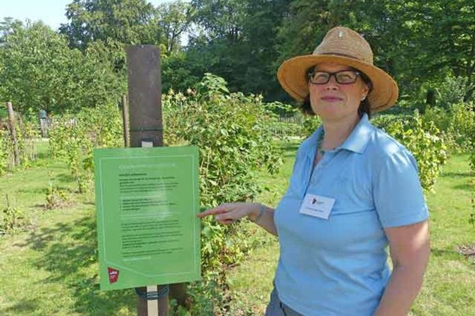 An den Eingängen zum und im Küchengarten hängen die grünen Schilder mit den Küchengarten-Regeln – „an denen geht man natürlich leicht mal vorbei“, sagt Kerstin Vieth, „daher machen wir gern nochmal darauf aufmerksam.“