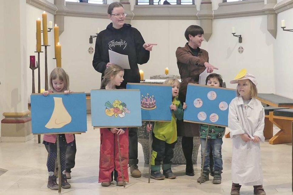 „Du warst der Anlaufpunkt für alle“, sagt Erzieherin Tatjana Ehrig, die durch den Gottesdienst führte. „Du wirst sehr vermisst werden.“ So viele Kinder und ErzieherInnen hat die Frau mit dem großen Herzen für Kleine und Große mit gesundem, leckerem Essen und ihrer liebevollen Art begleitet – zugewandt, herzlich und interessiert an ihren kleinen und großen Mitmenschen. Und weil nicht nur in der Küche sondern auch manchmal in der Kirche die besten Partys stattfinden, feierten die Kinder und das Team des Spatzennestes „ihre“ Maria so richtig und mit allem drum und dran. Von den „Fröschen“, die eine sehr coole Version vom Handwerkerlied in „Wer will leckeres Essen sehen?“ darboten bis zum Team, das Maria mit „Ich schenk Dir einen Regenbogen“ verabschiedete.