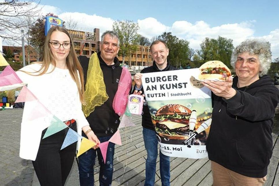 Eutin (aj). Dieses Konzept macht Appetit auf einen Ausflug an die Eutiner Stadtbucht: Burger an Kunst heißt das Foodtruck-Festival, das nicht nur den Gaumen freuen, sondern allen Sinnen ein buntes Programm bieten soll. Vom kommenden Freitag, den 13. Mai, bis zum Sonntag, den 15. Mai, wird sich vom Garten am frischen Wasser bis zum Hotelneubau „Seeloge“ Foodtruck an Genuss-Stand reihen. Da gibt es frisch zubereitete Burger für jeden Geschmack, Pulled Pork, Burritos und gesmoktes Fleisch, außerdem vegetarische Kreationen und Veganes. Ein gutes Dutzend mobile Küchen machen Station am Großen Eutiner See: „Es ist die erste große Veranstaltung, die wir hier wieder durchführen können“, sagt Michael Keller, der Geschäftsführer der Eutin Tourismus GmbH. Die moderne, leckere Streetküche soll auch jüngere Besucher*innen einladen, in der Stadtbucht zu verweilen. Und weil nicht allen der Blick auf den See genug Unterhaltung ist, ist mit dem Varieté-Theaterwagen der Gruppe Liebreiz ein etwas anderes Kultur-Erlebnis am Start. Zu jeder vollen Stunde darf eine etwa 25minütige Vorführung bestaunt werden. Dazu spielt die Musik – natürlich live – Walkacts mischen sich immer wieder unter die Besucherschar und Seifenblasen tanzen durch die Luft, die herrlich nach Kaffee duftet. Perfekt dazu: Waffeln und Süßes vom Süßwarenstand im Jahrmarktstil. Ein Hauch von Urlaub soll über die Flaniermeile wehen, wer sich an ein französisches Kleinkunstfestival erinnert fühlt, liegt richtig, und schon bei der Vorstellung des Programms zeigt sich: Burger an Kunst hat das Zeug zu einem wiederkehrenden Highlight. Das Eventteam jedenfalls hat ganze Arbeit geleistet dafür, dass sich Jung und Alt wohlfühlen, eine witzige Überraschung inklusive. Wenn das Foodtruckfestival gut ankommt, kann es nicht nur regelmäßig wiederholt werden, sondern auch wachsen: „Platz genug haben wir“, meinen Eva Staege, Nathalie Haack und Torsten Medloff und lassen Seifenblasen tanzen. „Burger an Kunst“ heißt es in der Stadtbucht am Freitag und Samstag von 11 bis 20 Uhr und am Sonntag von 11 bis 18 Uhr.