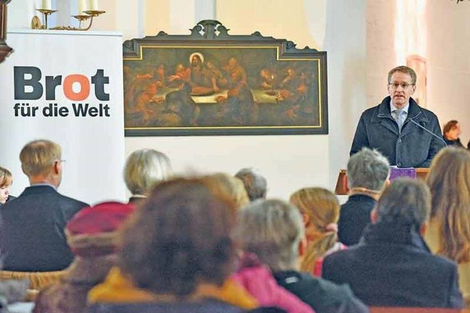 Eutin (t). Ministerpräsident Daniel Günther hat die Menschen in Schleswig-Holstein dazu aufgefordert, angesichts der Klimakrise und des Angriffskriegs auf die Ukraine „in diesen Zeiten zusammenzustehen“. In einem relativ reichen Bundesland wie Schleswig-Holstein, in dem die Menschen nachweislich besonders glücklich seien, gebe es eine besondere Verantwortung zum Mithelfen, sagte der Ministerpräsident am Sonntag im Gottesdienst zur Eröffnung der 64. Spendenaktion „Brot für die Welt“ in der evangelischen St. Michaeliskirche in Eutin. Die Aktion steht in diesem Jahr unter dem Leitwort „Eine Welt. Ein Klima. Eine Zukunft.“ und sammelt Spenden für Hilfsprojekte in der ganzen Welt.