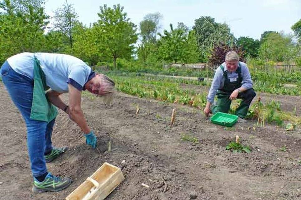 Der Naschgarten ist – wie sein Name schon sagt – auf Obst und Beeren angelegt, aber auch die ganz kleinen summenden Naschkatzen kommen bei einer herrlichen Blütenvielfalt auf ihre Kosten. Und mittendrin lädt ein Sitzplatz zum Verweilen und Genießen ein. Und der Garten „Neue Wurzeln finden“ wird unter der Ägide von Klaus Möller von einer Gruppe Menschen gepflegt, die aus Afghanistan und Syrien geflohen sind und hier neue Wurzeln gefunden haben. In ihrem Garten bauen sie mittlerweile Gemüse und Kräuter aus ihrer Heimat an – und dank des milden Klimas hier gedeiht beides prächtig.