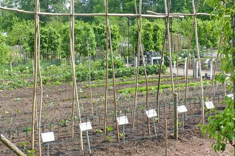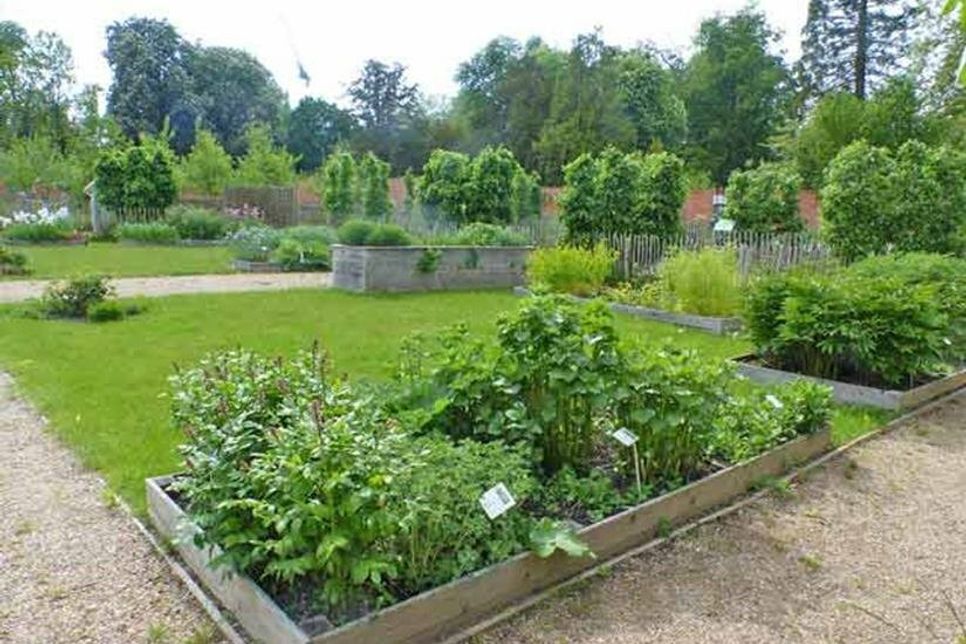 So werden drei Parzellen des Küchengartens im Auftrag der SparkassenStiftung von Stefanie Hönig zusammen mit KiTa-Gruppen und Schulklassen bewirtschaftet – hier können Kinder den Zauber erleben, wie aus einem Samenkorn Radieschen, Kräuter, Salate wachsen, selber ernten und in KiTa oder Schule zubereiten. Bisher seien es vier gewesen, berichtet Brigitta Herrmann, geschäftsführender Vorstand der Stiftung Schloss, aber die vierte Parzelle ist in die Gemeinschaft des Küchengartens übergegangen. Hier ist nun eine Bienenwiese entstanden – und ein Teil wird von Jörg Hunke vom Heil- und Giftpflanzengarten als „Forschungsanstalt“ in Sachen homöopathischen Pflanzenschutzes genutzt. „Es macht einfach Sinn, Pflanzen frühzeitig nachzuziehen“, sagt er, „und dann kommt der homöopathische Pflanzenschutz ins Spiel – zum Beispiel bei Tomaten gegen Braunfäule. Und bei unseren Kesselbäumen hier hat er schon prima angeschlagen.“ Und Jörg Hunke ist geradezu prädestiniert dafür, sich mit Globuli und Co um Pflanzengesundheit zu kümmern, steht er doch dem Heil- und Gipfpflanzengarten vor, der in sieben Hochbeeten mit 165 verschiedenen Pflanzenarten die ganze Kunst der Natur zeigt. Nicht jede Pflanze sollte berührt oder gar gekostet werden, aber dem wird mit verständlicher und bestimmter Beschilderung vorgebeugt.