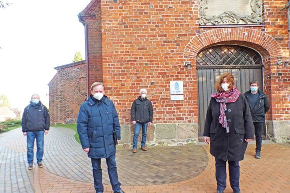 Der Kirchturm ersetzte einen älteren aus dem Jahr 1715, der zwar noch jung an Jahren, aber doch erheblich beschädigt war. Er wurde bereits 1746 abgetragen, der neue Turm allerdings erst 1760 begonnen – 1761 wurde er fertiggestellt und eingeweiht. Bereits 1793 musste er zum ersten Mal instand gesetzt werden, zum ersten, aber bei Weitem nicht zum letzten Mal. So traf ihn 1865 ein Blitzschlag und richtete großen Schaden an – heute ist der Kirchturm eine Mischung aus Sanierungsarbeiten mehrerer Jahrhunderte, die nicht immer ganz sachgemäß waren. So wurde statt des gebrannten Kalks Zement für die Fugen verwendet – der aber wird zu hart, arbeitet nicht mit den Backsteinen, sodass diese sich zurückziehen, frieren, reißen und zerbrechen. Man habe Bohrungen durchgeführt, um Feuchte, Beschaffenheit und Salzgehalt zu messen, die Untersuchungsergebnisse werden Ende Februar eintreffen und die Grundlage für das weitere Vorgehen bilden. Sicher ist, dass der Zement und auch zahlreiche Steine ausgetauscht werden müssen – auch die Zusammensetzung der Steine muss untersucht werden, um sie nachbrennen zu können, zumal beim Turmbau Steine im Kloster- sowie im Reichsformat verwendet worden seien. „Wir haben bereits Angebote bei Brennereien eingeholt“, sagt Architekt Thomas Uhlen, „und dann entscheiden, welchen Mörtel wir nehmen.“ Alles in allem werde es sicher noch ein gutes halbes Jahr dauern, bis die Arbeiten beginnen können. Das sei ein vernünftiges Zeitfenster, auch in Anbetracht der Entscheidung über die Förderung, sagt der Bundestagsabgeordnete. „So ein Schätzchen wie diese ortsbildprägende Kirche muss erhalten werden“, so Ingo Gädechens, „und es ist klar, dass ein so altehrwürdiges Bauwerk mal einen Erneuerungsbedarf hat – und auch, dass der nicht ohne Hilfe gestemmt werden kann.“ Natürlich seien es schwierige Zeiten, es sei aber auch kontraproduktiv, in diesen Zeiten aufzuhören, den Schutz solcher Denkmäler zu stoppen.