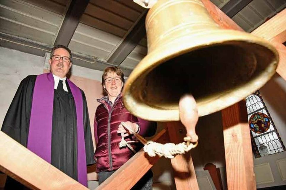 Süsel (t). Es fehlte einfach etwas. Ein Gottesdienst ohne Glockengeläut? Rund um die aus dem 12. Jahrhundert stammende Kirche St. Laurentius in Süsel blieb es im Herbst ein paar Mal still, als der Gottesdienst begann. Der Grund dafür war und ist der bedauernswerte Zustand des Glockenturms. Denn im Zuge der Sanierung der historisch bedeutsamen Vicelin-Kirche wurden erhebliche Mängel festgestellt. Das ist an und für sich nicht neu, denn die Mängel waren ja mit ausschlaggebend dafür, dass überhaupt eine umfangreiche Sanierung der Kirche auf den Weg gebracht wurde und längst nicht mehr alle drei Glocken der Kirche läuten durften. Doch kürzlich wurde nun auch festgestellt, dass sogar die eine zuletzt noch läutende Glocke die Statik des Kirchturms gefährdet. „Bei näherem Hinsehen und dem entsprechenden Baufortschritt wurde festgestellt, dass die Kuppel, auf der die Glockenstühle stehen, instabiler sind, als zuvor abzusehen war“, erläutert Pastor Matthias Hieber. Das muss nun im Zuge der Sanierung der Kirche mit behoben werden. Das verursache zwar Mehrkosten, sagt der Pastor, doch man bleibe im Kostenrahmen von geplant rund zwei Millionen Euro. Dennoch, ein Problem blieb: Welche Glocke sollte zum Gottesdienst einladen? „Es hat uns gefehlt, als gar nichts war“, so Pastor Hieber. Für solche Fälle hat der Kirchenkreis Ostholstein im Evangelischen Zentrum in Eutin eine Reserve im Keller stehen: Propst Matthias Wiechmann hatte vor rund einem Dutzend Jahren zu „Dank- und Fortbildungstagen“ für die verschiedenen Arbeitsfelder des Kirchenkreises eingeladen. Die Küsterinnen und Küster beteiligten sich mit dem Bau eines mobilen Glockenstuhls. Und der kommt nun zum Einsatz. Küsterin Silke Rüting ist diejenige, die nun sonntags die kleine rund 110 Kilo schwere Glocke im hinteren Bereich des Kirchenschiffs läutet. „Die Glocke gehört einfach dazu, zum Gottesdienst“, sagt sie. Und der Pastor ergänzt: „Dass wir den Gottesdienst ein- und ausläuten können, das fällt schon positiv auf.“
