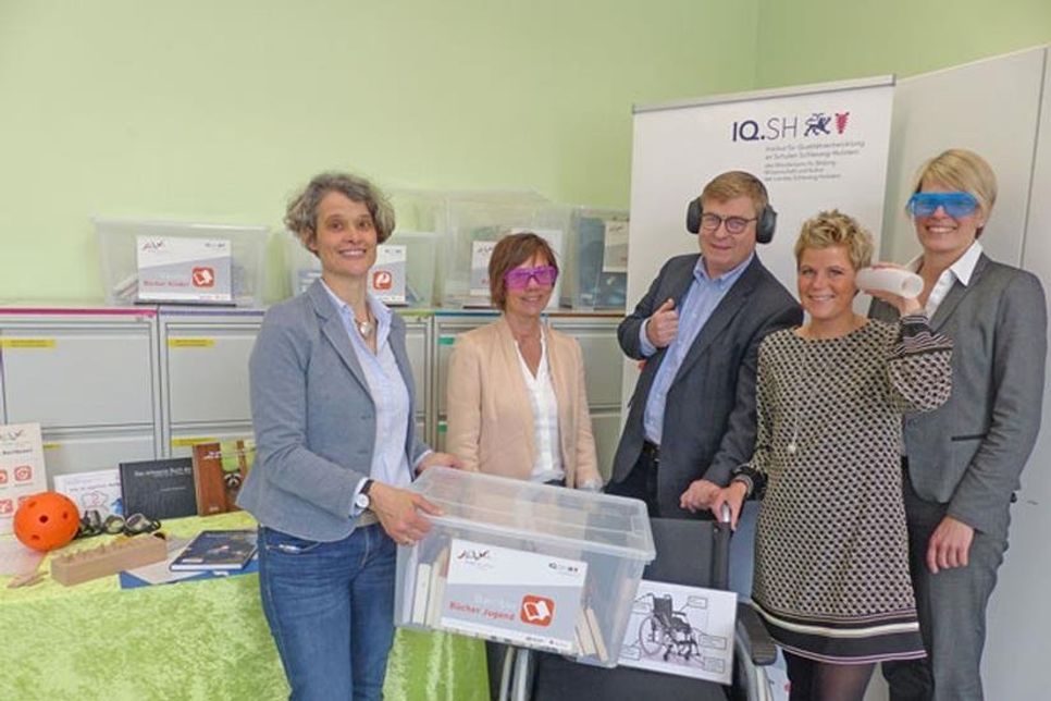 Eutin (ed). „Barriboxen“ heißen die großen Plastikboxen mit der Aufschrift „Hören“ oder „Sehen“ oder „Bewegung“ oder „Autismus“ – gefüllt sind sie mit dem unterschiedlichsten Material zum Ausprobieren, Anschauen, Anfassen, Lesen, Verstehen. Sie sollen Kindern und Jugendlichen helfen zu verstehen, wieso jemand so tickt, wie er tickt. Wenn er nicht so gut sehen oder hören oder sich bewegen kann wie alle anderen – oder wenn er eine Form von Autismus hat und den Alltag einfach nicht mal so eben bewältigen kann wie viele seiner MitschülerInnen. Die Boxen wurden im Rahmen des Projektes „Barrierearme Schule“ des Instituts für Qualitätsentwicklung an Schulen Schleswig-Holstein (IQ.SH) entwickelt und können von Schulen ausgeliehen werden – jetzt auch in Ostholstein. Hier sind sie am zuständigen Förderzentrum der Region, der Albert-Mahlstedt-Schule angesiedelt. „Wir haben eine Fortbildung zur barrierearmen Schule gemacht“, erzählt Schulleiterin Antonie Schwirz, „und sind darüber ins Gespräch gekommen, dass es diese Boxen gibt. Die fanden wir eine sehr gute Idee und haben uns damit an den Schulrat gewendet.“ Bei Schulrat Manfred Meyer rannte Antonie Schwirz mit der Idee offene Türen ein. „Die Kinder werden immer unterschiedlicher“, erklärt Manfred Meyer, „bringen ihre Päckchen mit in die Schule – und darauf können wir als Lehrer mit diesen Boxen ganz praktisch eingehen.“ Und eben dieses Praktische, die Möglichkeit, sich zumindest ein bisschen in den anderen hineinversetzen zu können, das war auch der Ursprung der Barriboxen – Barri kommt natürlich von Barriere. Die gilt es zu überwinden und im besten Falle einfach niederzureißen. Durch gegenseitiges Verständnis, auch wenn der oder die Andere ein bisschen anders ist als man selbst – zu verstehen, wieso er oder sie genau so verhält. „Wir kamen zu dem Schluss, dass wir etwas Praktisches brauchen, um die Kinder dafür zu sensibilisieren, dass da jemand ein bisschen anders ist“, erzählt Inken Schnaase, die zuständige Projektleiterin. „Weil erst die Erfahrungsebene es spannend und interessant macht. Angefangen haben wir mit Hören und Sehen, weil es am einfachsten nachzuvollziehen ist.“ Kopfhörer dämpfen die Geräusche wie bei jemandem, dessen Gehör eingeschränkt ist, der Weg durch die Schule in einem Rollstuhl zeigt ungeahnte Barrieren auf, spezielle Brillen machen deutlich wie es ist, nur hell und dunkel oder nur Schemen sehen zu können. Wie viele Kinder es gibt, die unter solchen Handicaps leiden, zeigt oftmals erst die schulärztliche Untersuchung vor der Einschulung: „Vor allem starke Fehlsichtigkeit oder Probleme beim Hören kommen erst dann zutage“, so Manfred Meyer, umso froher sei er, dass der Jugendärztliche Dienst des Kreises so gut aufgestellt und so umsichtig sei. Das gilt auch für andere Barrieren, mit denen Kinder in ihrem Alltag konfrontiert sind, die aber für die anderen nicht so offensichtlich sind – wenn zum Beispiel das Gehirn bei der Verarbeitung von Reizen anders arbeitet, wenn eine Form von Autismus vorliegt, die man schlicht nicht sehen kann. Der Autismus liegt Inken Schnaase besonders am Herzen, einfach weil man ihn nicht so leicht verstehen kann wie eine eingeschränkte Seh- oder Hörfähigkeit. Um nicht autistischen SchülerInnen Autismus zu erklären, gibt es die verrückte Blinke-Brille, zwei Hörhörnchen, an denen mit einer Spülbürste geschrubbelt wird. Manfred Meyer probiert es aus: „So, und jetzt: Drei mal 17“, fordert ihn Inken Schnaase zum Rechnen auf, während die Brille blinkt und das Geräusch auf ihn einprasselt. Der Schulrat schüttelt den Kopf: „Das geht nicht“, sagt er. „Und so fühlen sich Autisten oftmals im Alltag“, erklärt Inken Schnaase. Die Übung heiße „Totaler Wahnsinn“: Komplette Reizüberflutung durch Geräusche, visuelle Reize, schulische Anforderungen – so scheitern intelligente Kinder schon an einfachsten Aufgaben, am Alltag und bekommen ihren Stempel. Weil sie ausflippen, wenn es ihnen zuviel wird, schreien, sich bewegen müssen oder sich unterm Tisch verkriechen. Zu verstehen, wieso sie das tun, dabei hilft das Material zum Autismus – und auch zu verstehen, wieso gerecht manchmal ungerecht aussieht. Wenn jemand nach seinen Möglichkeiten arbeiten darf, einfach weil es nicht anders geht, sieht das für den andern manchmal ungerecht aus. Sehr schön zeigt das Die Schule der Tiere, ein Bild, auf dem benotet wird, wie die Tiere auf einen Baum klettern. Und dass das für den Affen und den Vogel deutlich leichter ist als für Goldfisch oder Elefant. Die Barriboxen helfen zu verstehen, wieso jemand ist, wie er ist – und dass er gut so ist. Das IQ.SH holte die Sparkasse Holstein als Sponsor mit ins Boot, die von der Idee, spielerisch, anschaulich und ganz praktisch Barrieren auch unter den SchülerInnen abzubauen, begeistert war. So ermöglicht es jetzt die Sparkasse Holstein, dass im Kreis Ostholstein Boxen zur Verfügung stehen. „Als Förderzentrum haben wir den Auftrag, Regelschulen bei der Umsetzung von Inklusion zu unterstützen“, sagt Antonie Schwirz, „Mit den Barriboxen können wir unsere Angebotspalette deutlich erweitern. Die Wege für interessierte Lehrkräfte werden deutlich verkürzt, Schul- oder Klassenprojekte können anschaulich durchgeführt und Verständnis für den anderen geweckt werden.“