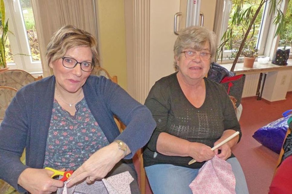 Das kann Heike nur unterstützen: Die junge Frau ist zwar keine LandFrau, aber bei den Herzkissen-Aktionen aus Überzeugung mit dabei. Sie ist selbst im vergangenen Jahr an Brustkrebs erkrankt und bekam ein Herzkissen von ihren Freundinnen geschenkt – „dieses Kissen schenkt nicht nur Entlastung sondern auch Trost”, weiß sie. „Das ist mir ein echtes Herzensbedürfnis zu helfen, dass jede Frau nach der Brust OP ein solches Kissen bekommt.” Dass Bedarf da ist, weiß sie gut: Als sie selbst in der Klinik lag, war der Vorrat an Herzkissen komplett aufgebraucht, wie ihr die Schwestern auf der Station erzählten. „Da habe ich meine Freundinnen bei den LandFrauen angerufen und gesagt: Wir müssen nähen. Das ist so wichtig – und wir haben losgelegt.” Auch Doris Reimers ist als Gast hier und freut sich, in Gemeinschaft für Frauen zu nähen, denen das Kissen so gut tut – „es ist gut für Körper und Seele, und wir machen es gern.”
